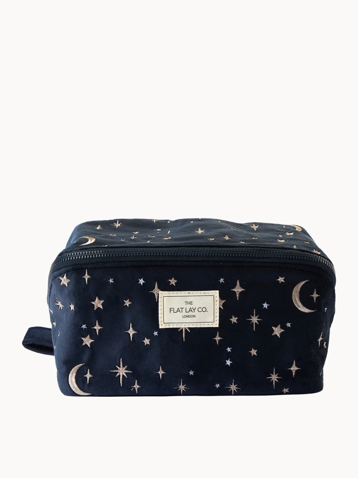 The Flat Lay Co. Flat Lay Makeup Box Bag - Celestial Blue Embroidered Velvet