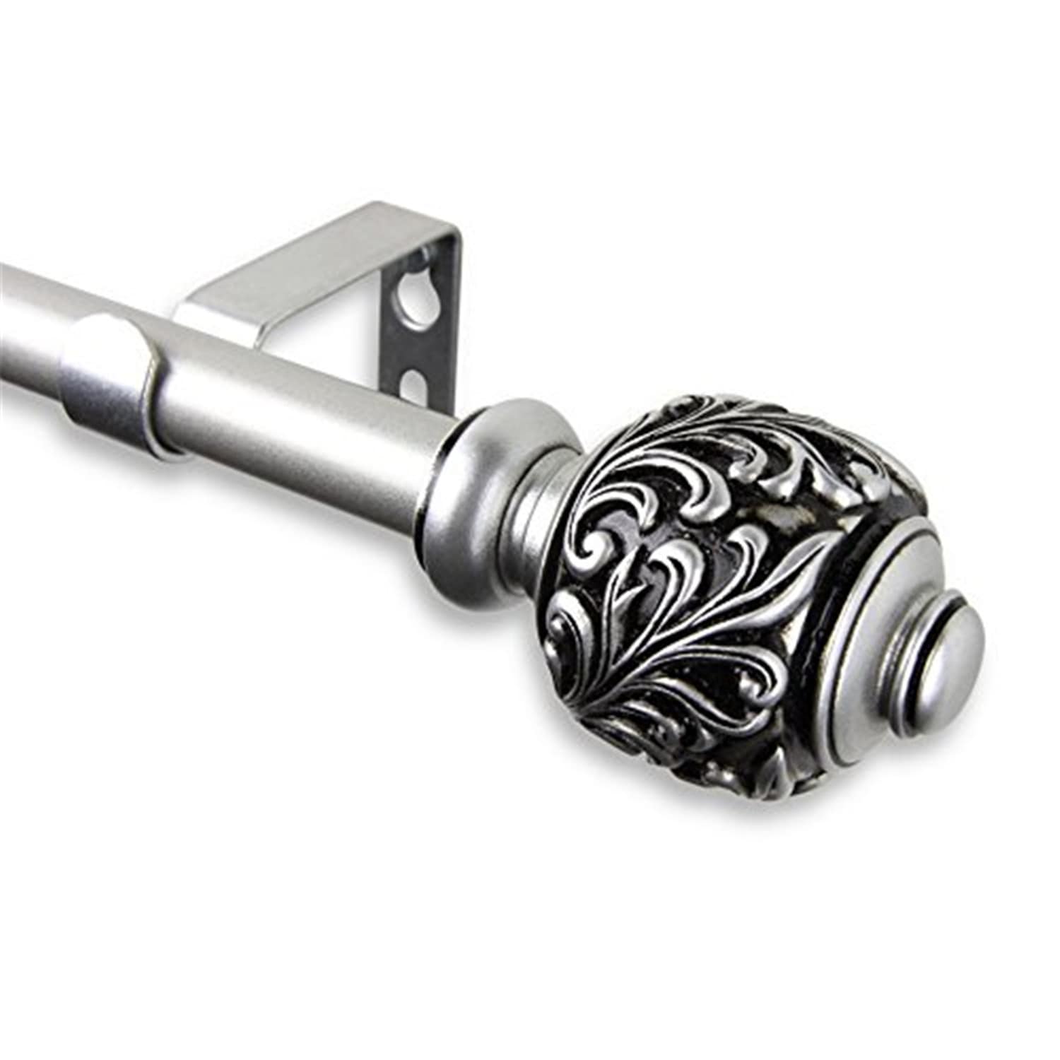 Double Curtain Rod Home Decor Window Treatment Set - Adjustable Length Finials Included - 48