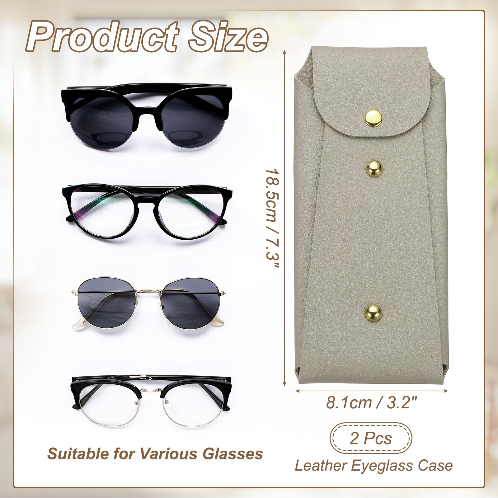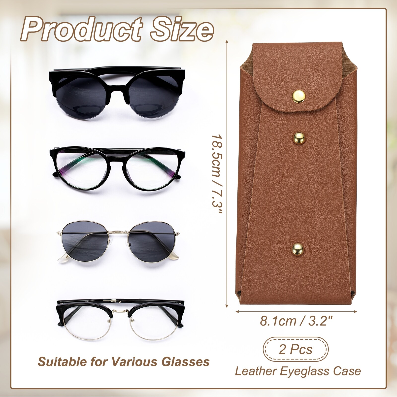 2Pack Nail Buckle Leather Eyeglass Case with Glasses Cloths,
