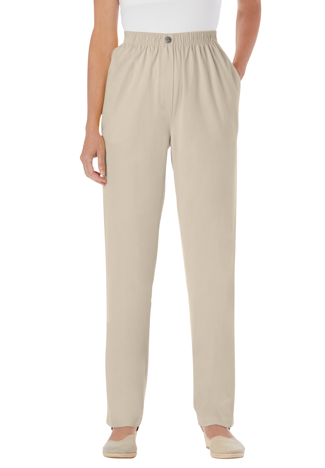 Plus Size Women's Straight-Leg All-Cotton Denim Pull-On 7-Day Elastic-Waist Jeans by Woman Within in Natural Khaki (Size 36 T) Pant
