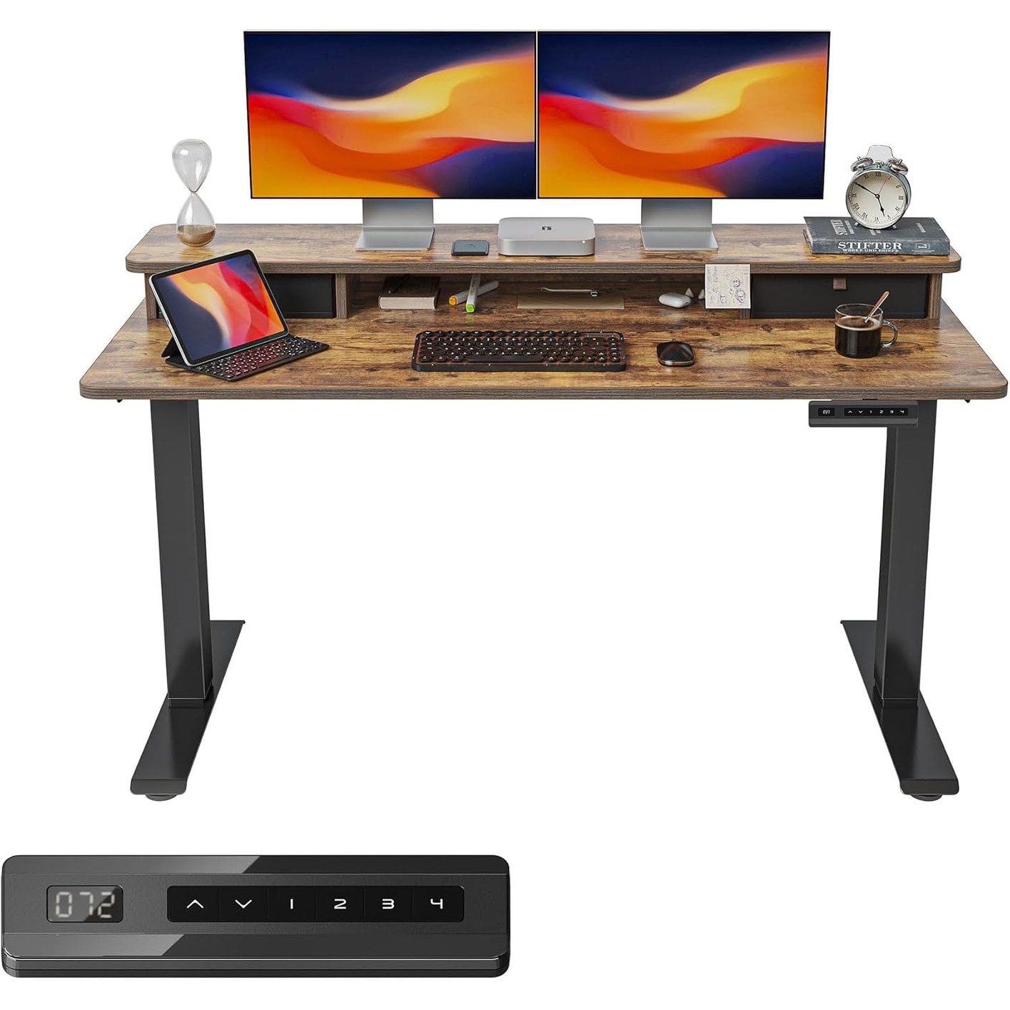 55''x 24'' Electric Height Adjustable Standing Desk with Double Drawer, Rustic Brown
