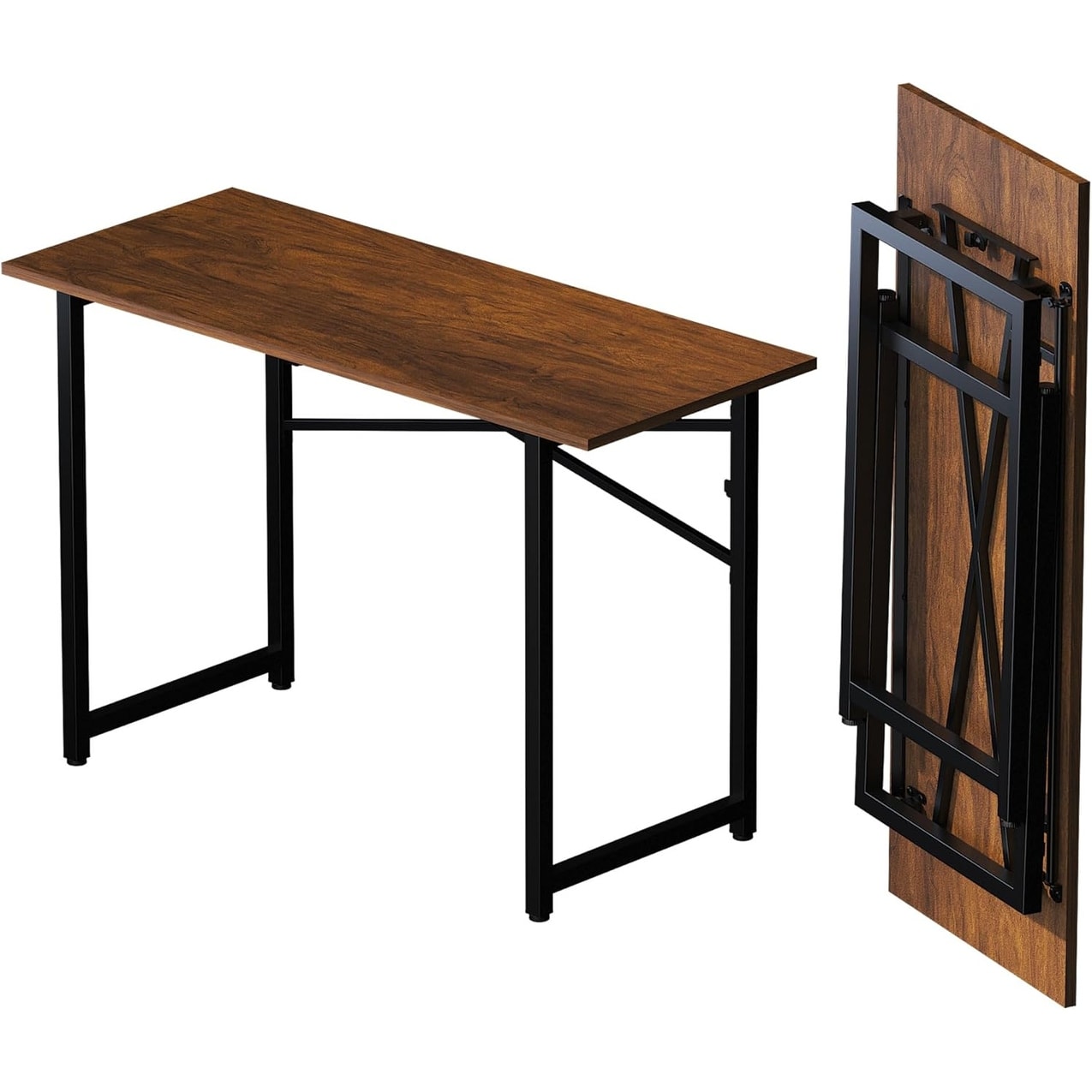 47 Inch Folding Desk, No Assembly Required, Space Saving, Multifunctional, Mahogany