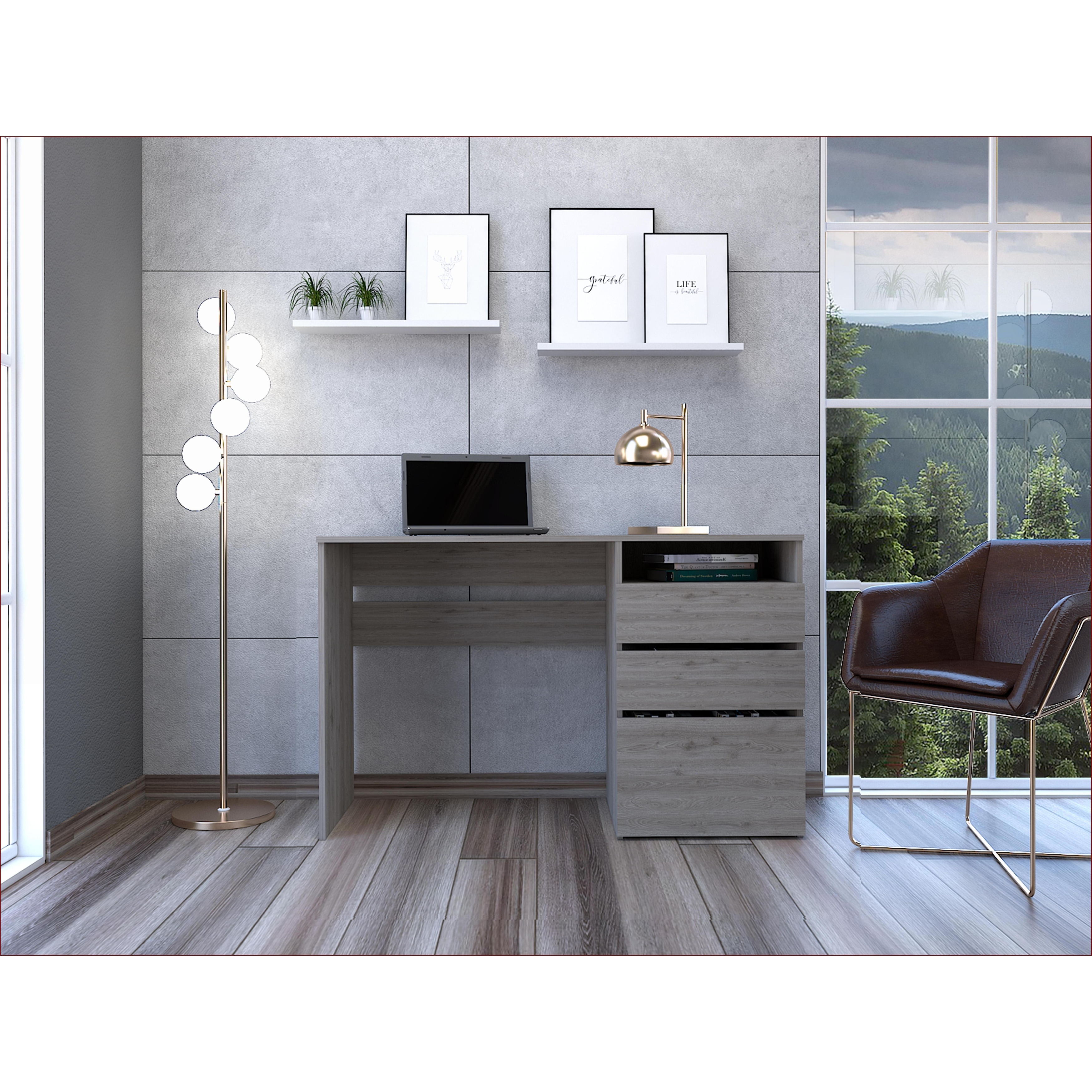 Desks, Modern Light Gray Computer Desk with 3 Drawers and Shelf, 47.4in Wide, Particle Board