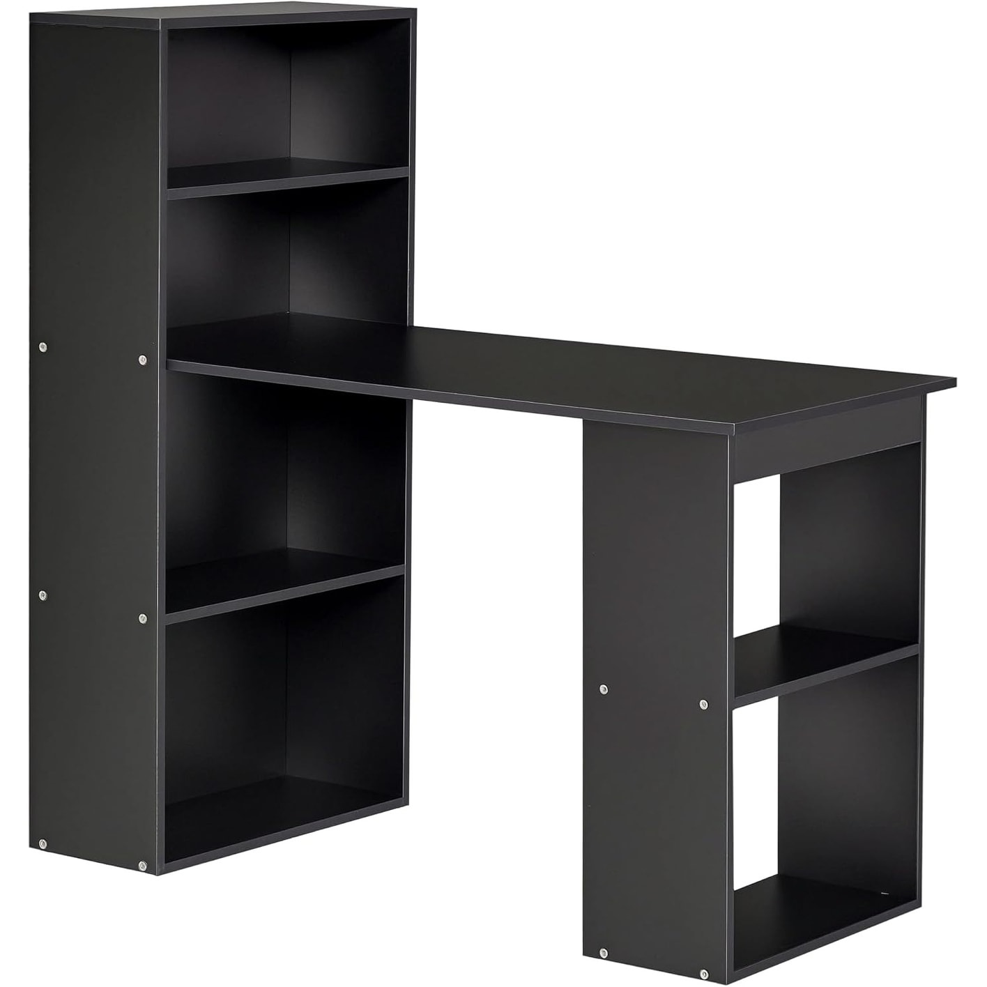 47 Inch Modern Home Office Desk with 6-Tier Storage Shelves, Black Writing Desk with Bookshelf