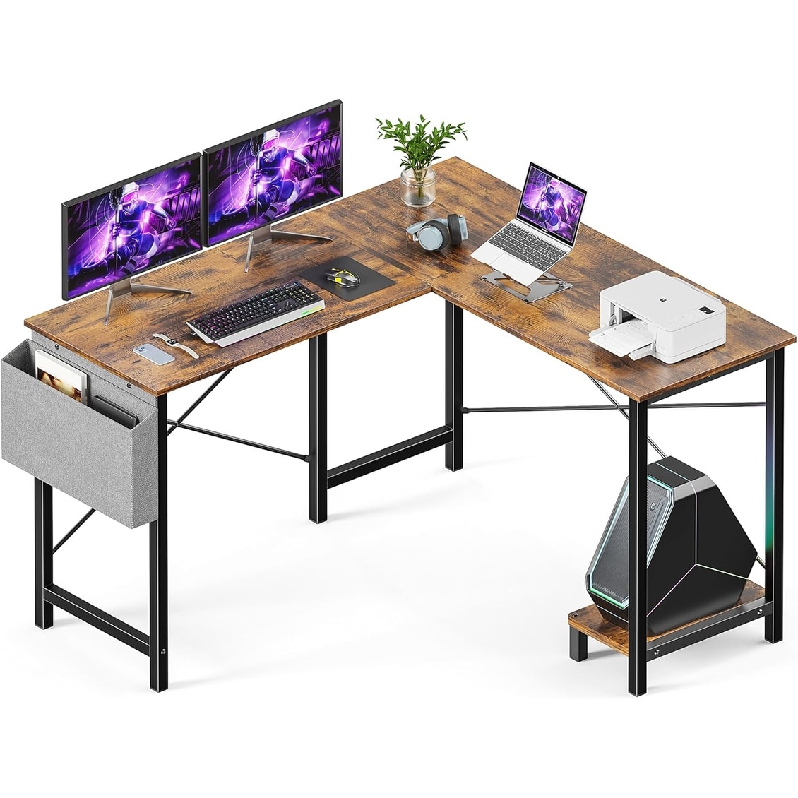 L Shaped Gaming Desk with Wood Tabletop and Metal Frame, 50 Inch Corner Desk for Home Office