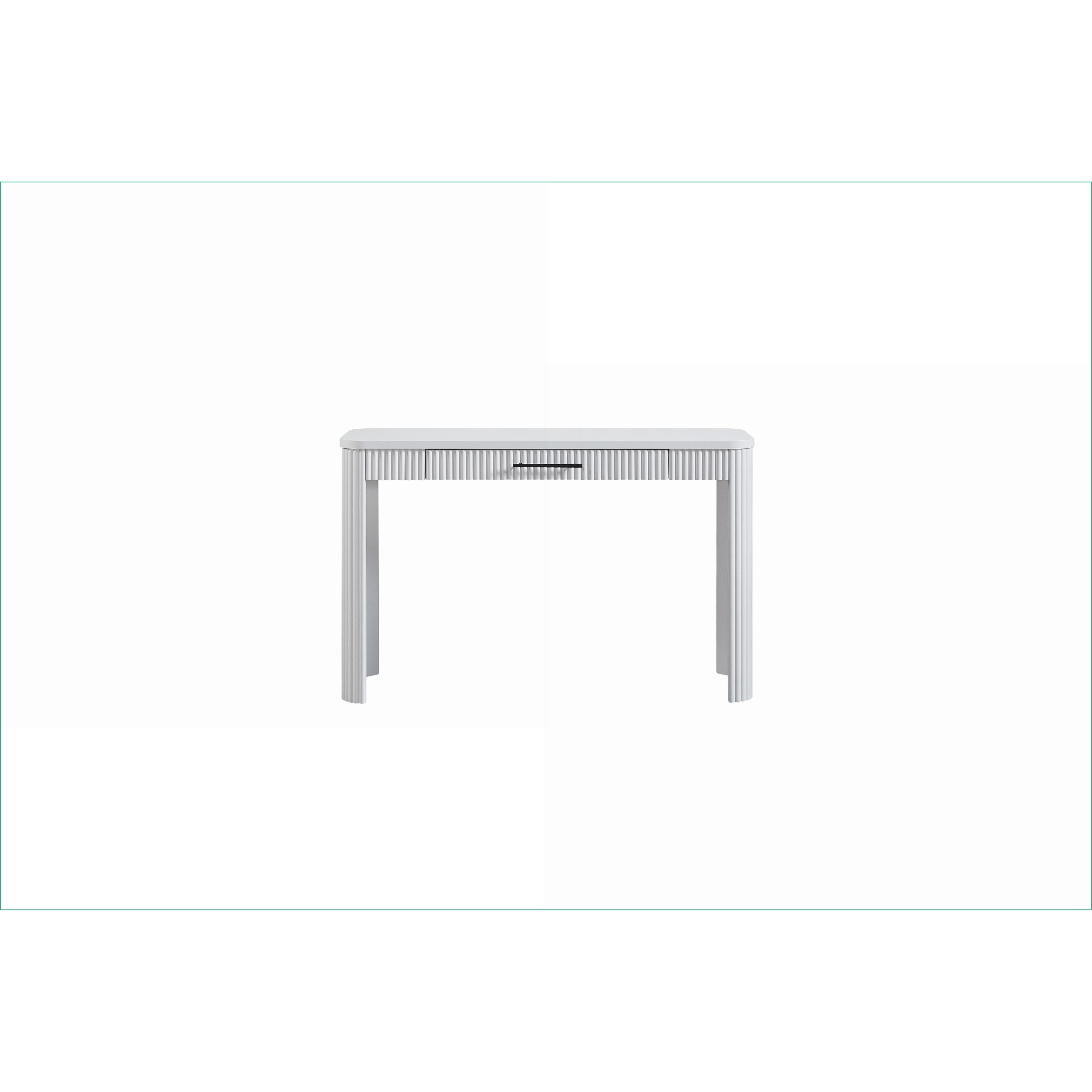 Desks, Casual Transitional Writing Desk with Reeded Fronts and 1 Storage Drawer, White, Solid Wood and MDF
