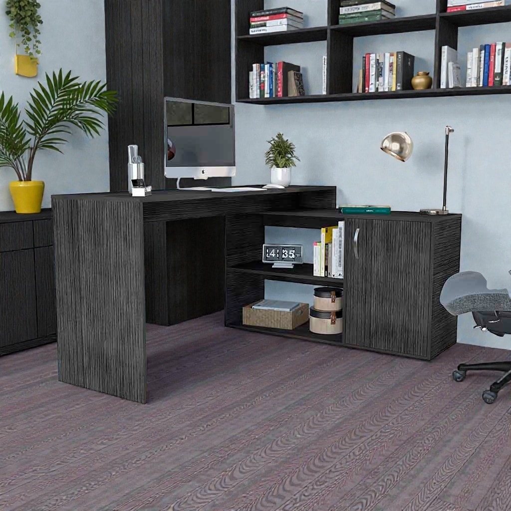 L-Shaped Corner Office Desk with Open Shelves and Storage Cabinet, Extended Computer Workstation for Home Office