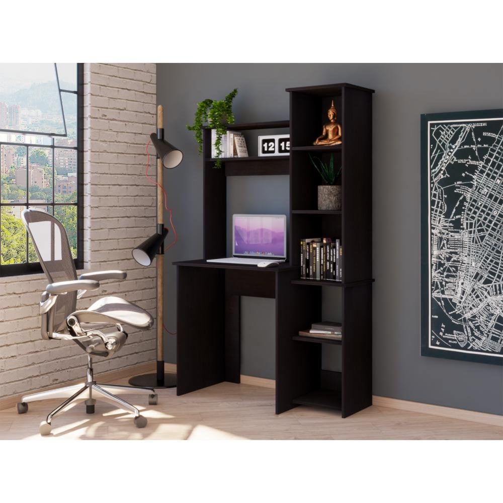 Computer Desk with Hutch and Side Bookcase, Five Open Shelves, Compact Writing Desk for Home Office
