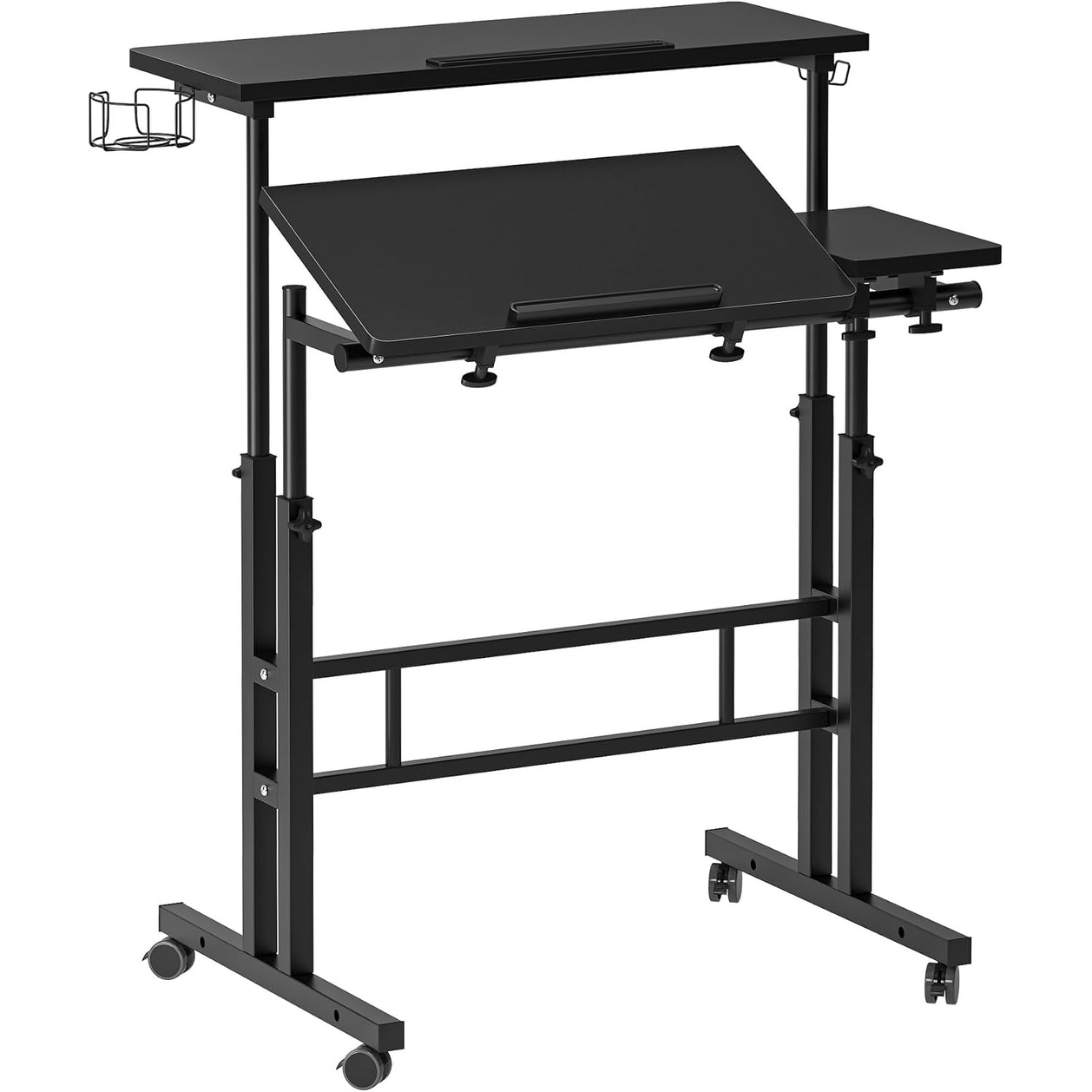 Adjustable Height Mobile Laptop Desk with Cup Holder, 31.5 Inch, Black