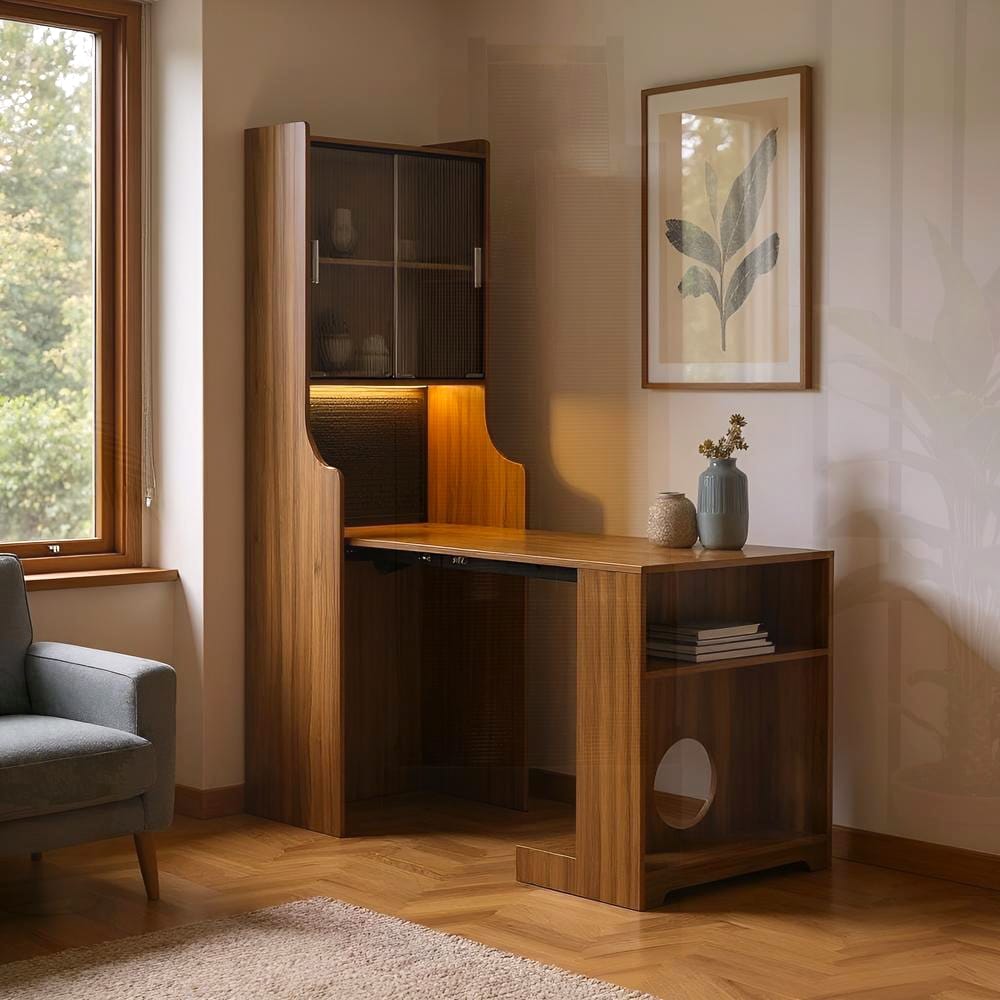 Modern Wooden Foldable Desk w/Hutch, Storage, Pet-Friendly Gaming Desk