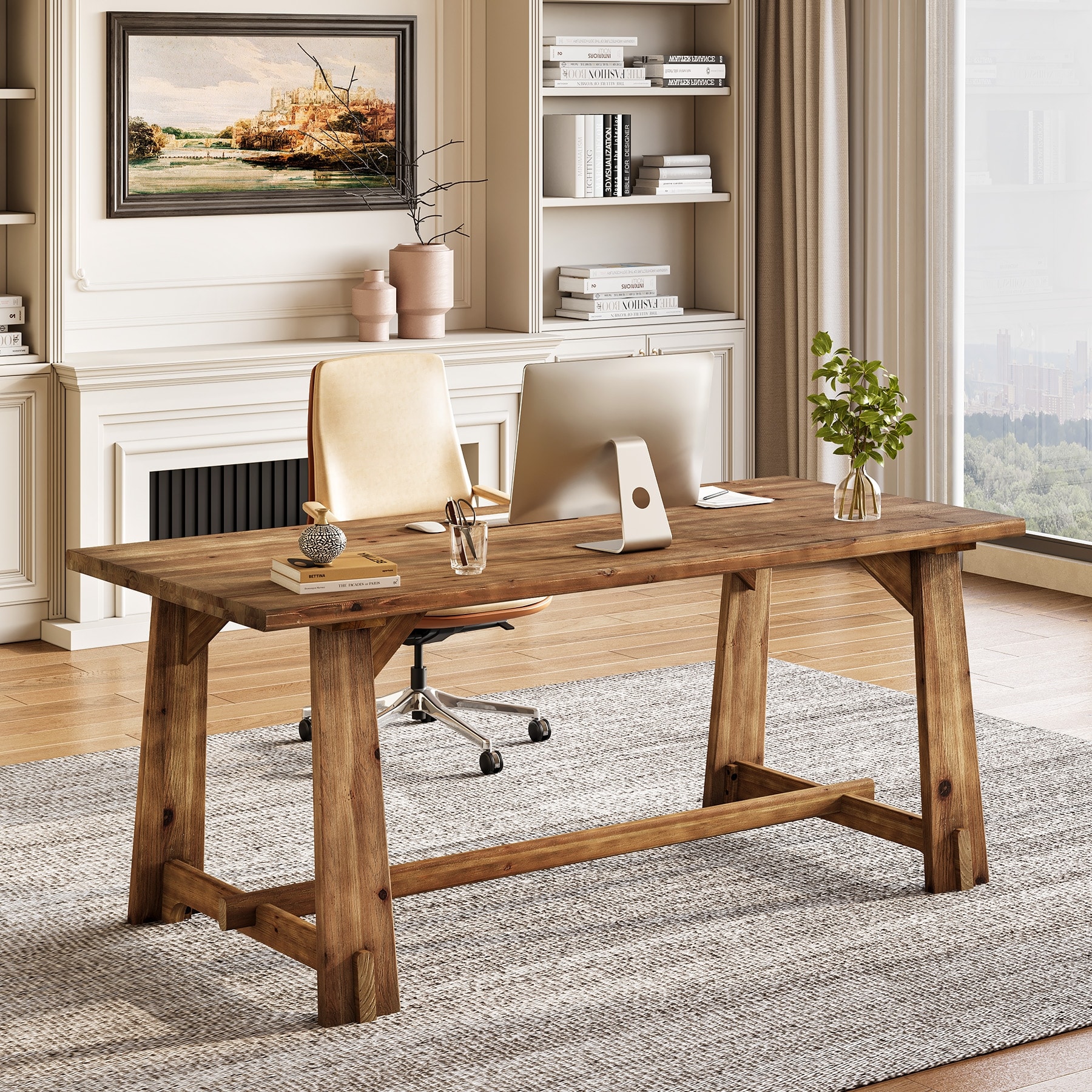 Farmhouse Solid Wood Office Desk, 63" Executive Computer Desk
