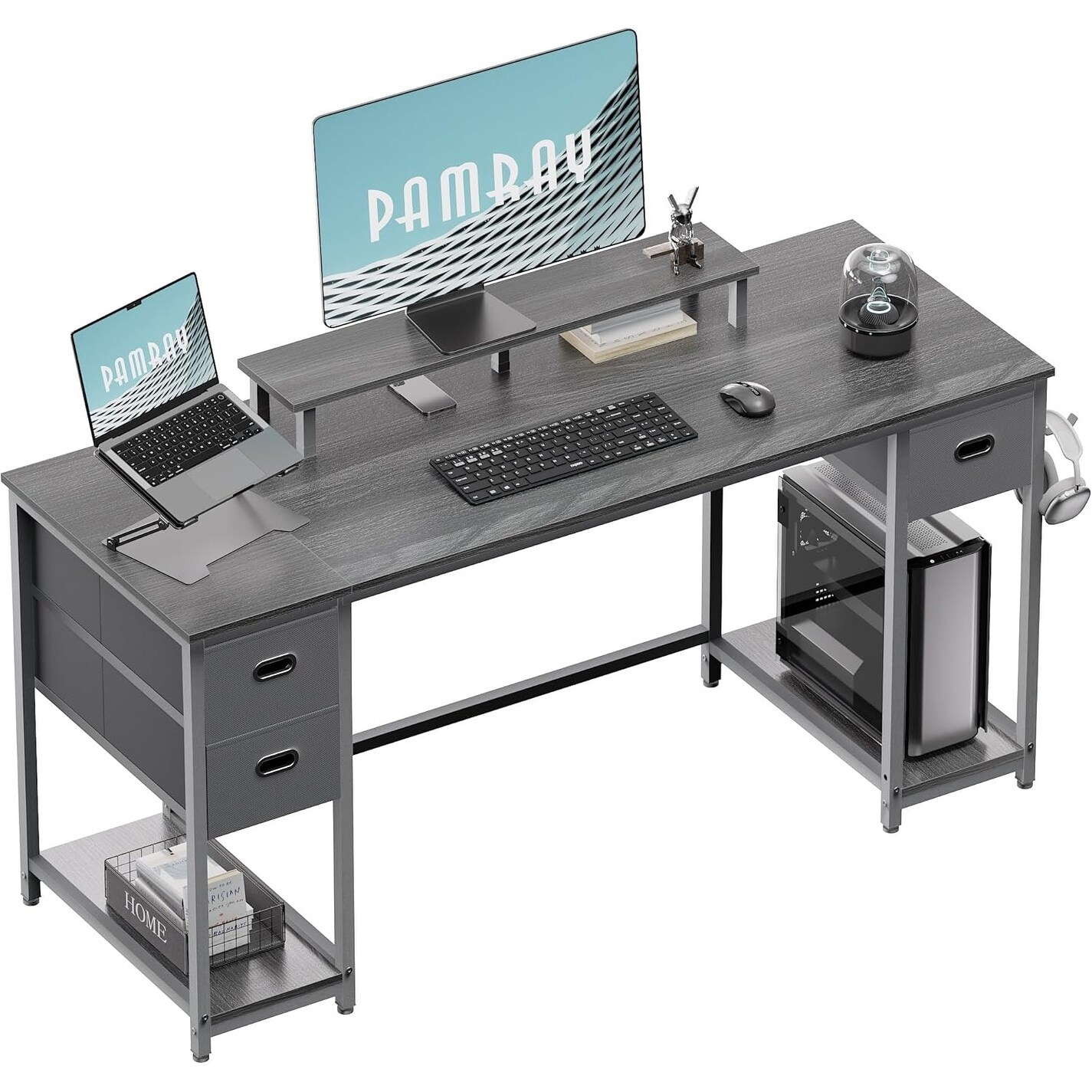 55 Inch Home Office Desk with Storage Drawers, Monitor Stand, and PC Tower Compartment