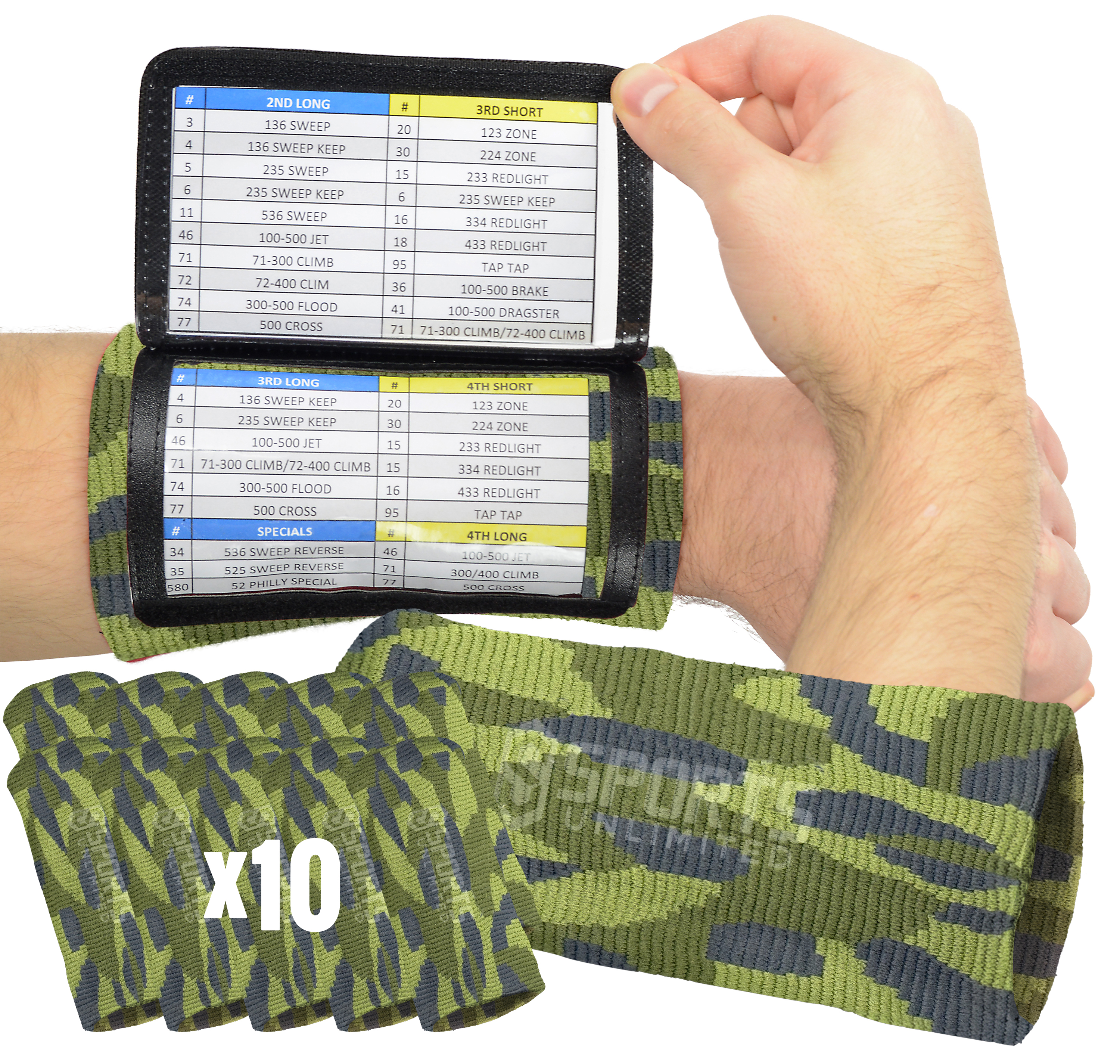 Sports Unlimited Adult Football Triple Wrist Coach (10 Pack) Camo