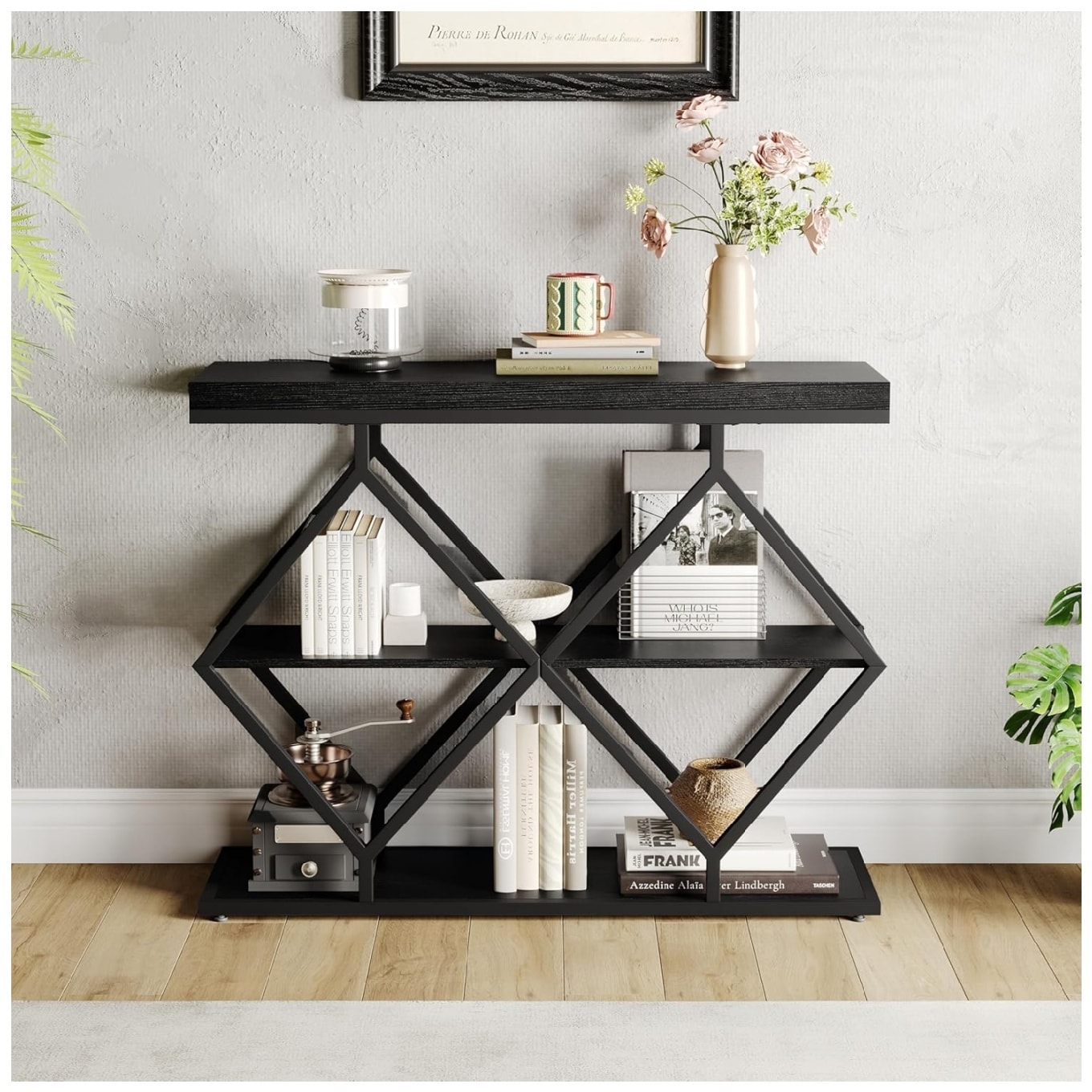 3-Tier Entryway Table, Industrial Console Sofa Table with Storage, Accent Table with Open Shelves