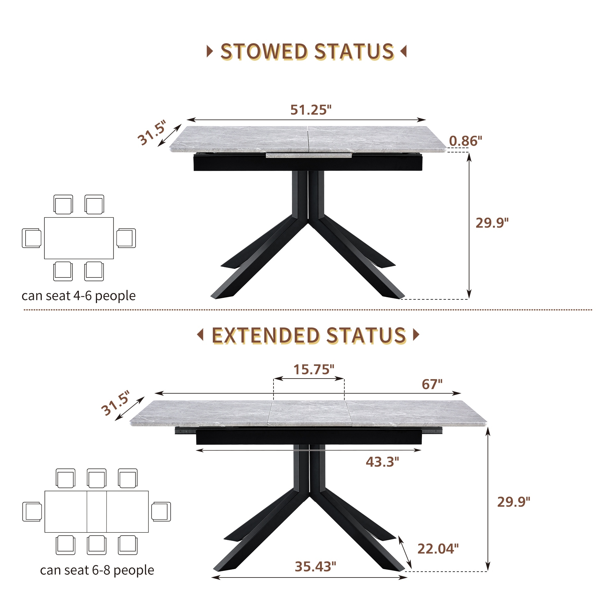 94.48" Minimalism Modern Extendable Rectangular Sintered Stone Dining Table For 8 person