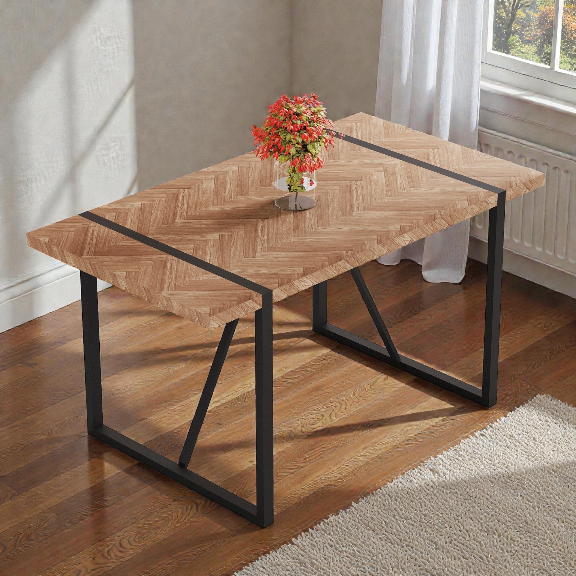 55" Minimalist Retro Dining Table with Textured MDF Top and Inset Rectangular Black Metal Legs, Multi-Purpose Table for Dining