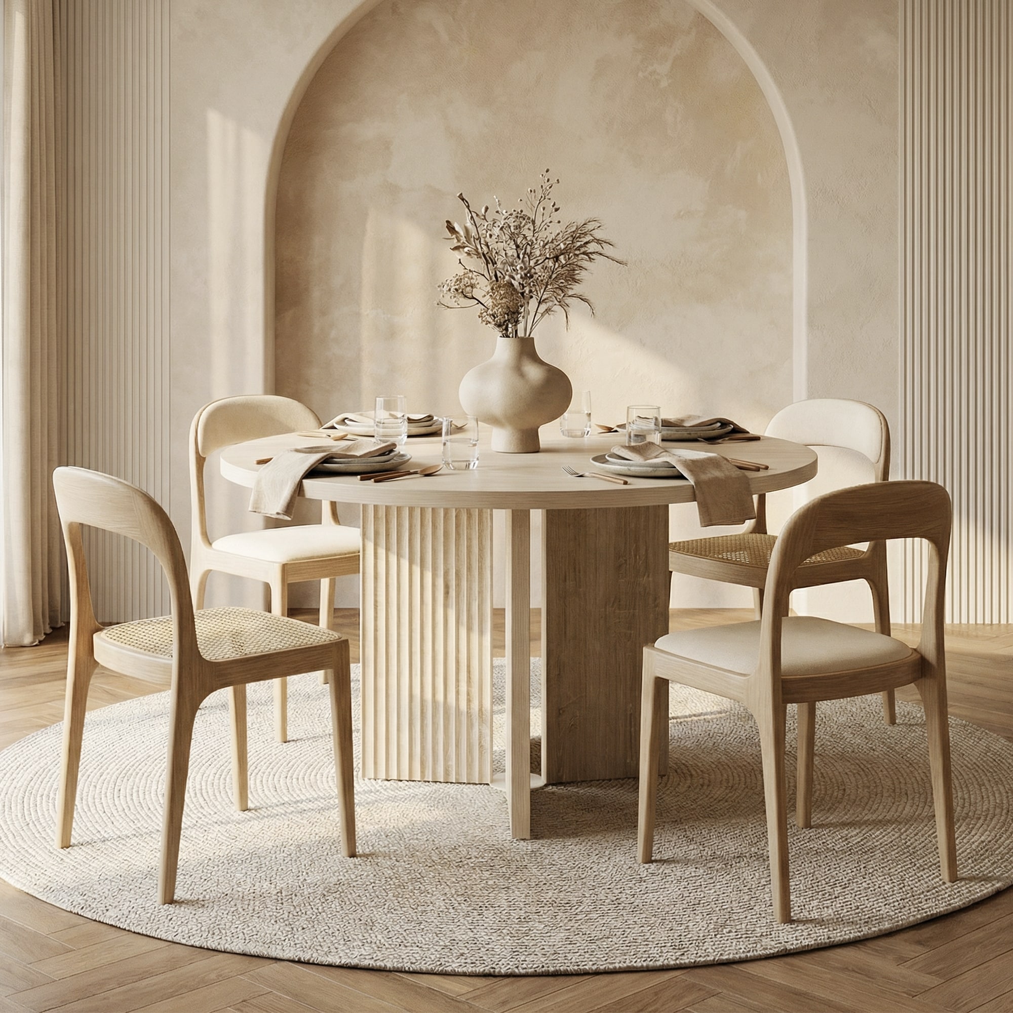 47.24" Mid-Century Modern Round Dining Table with Fluted Base - 29.5'' H X 47.2'' W X 47.2'' D