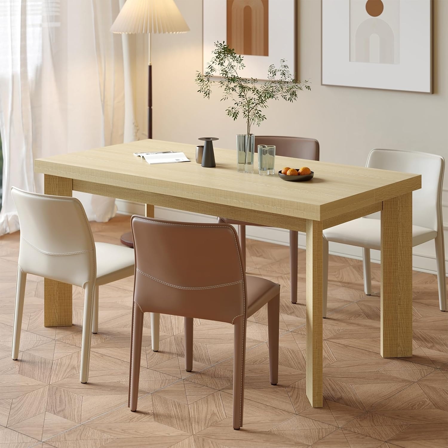 63 Inch Rectangular Wooden Dining Table for 6, Indoor Outdoor Kitchen Table with Large Tabletop, Modern Farmhouse Design