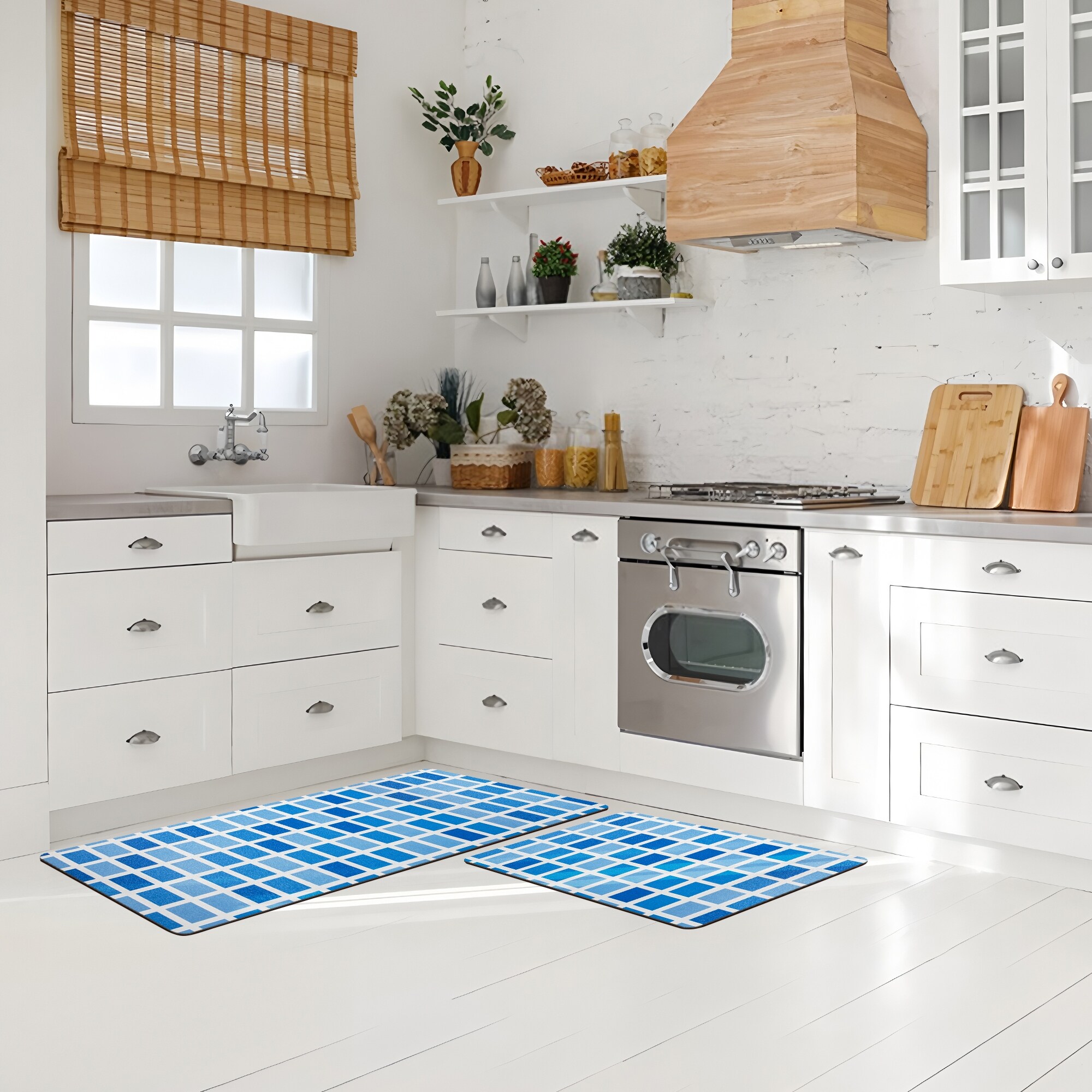 Ray Star Blue Gradient Grid Kitchen Mat