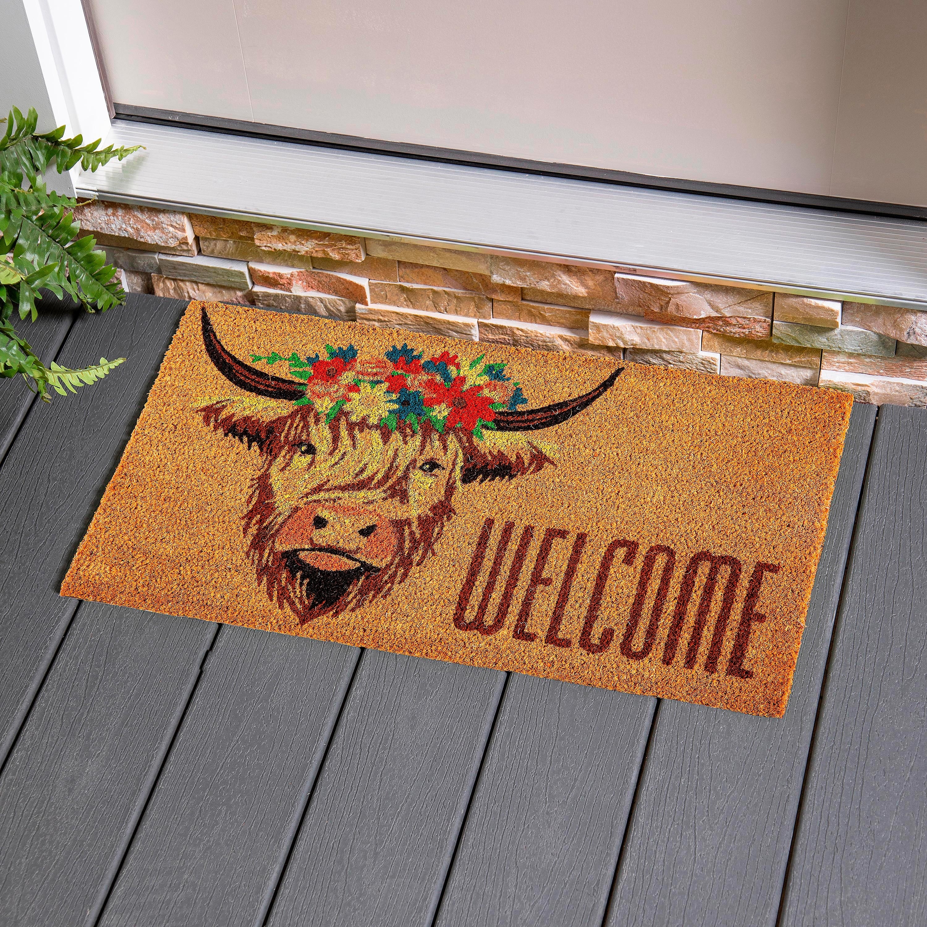 28 in. x 16 in. Highland Cow Welcome Coir Mat