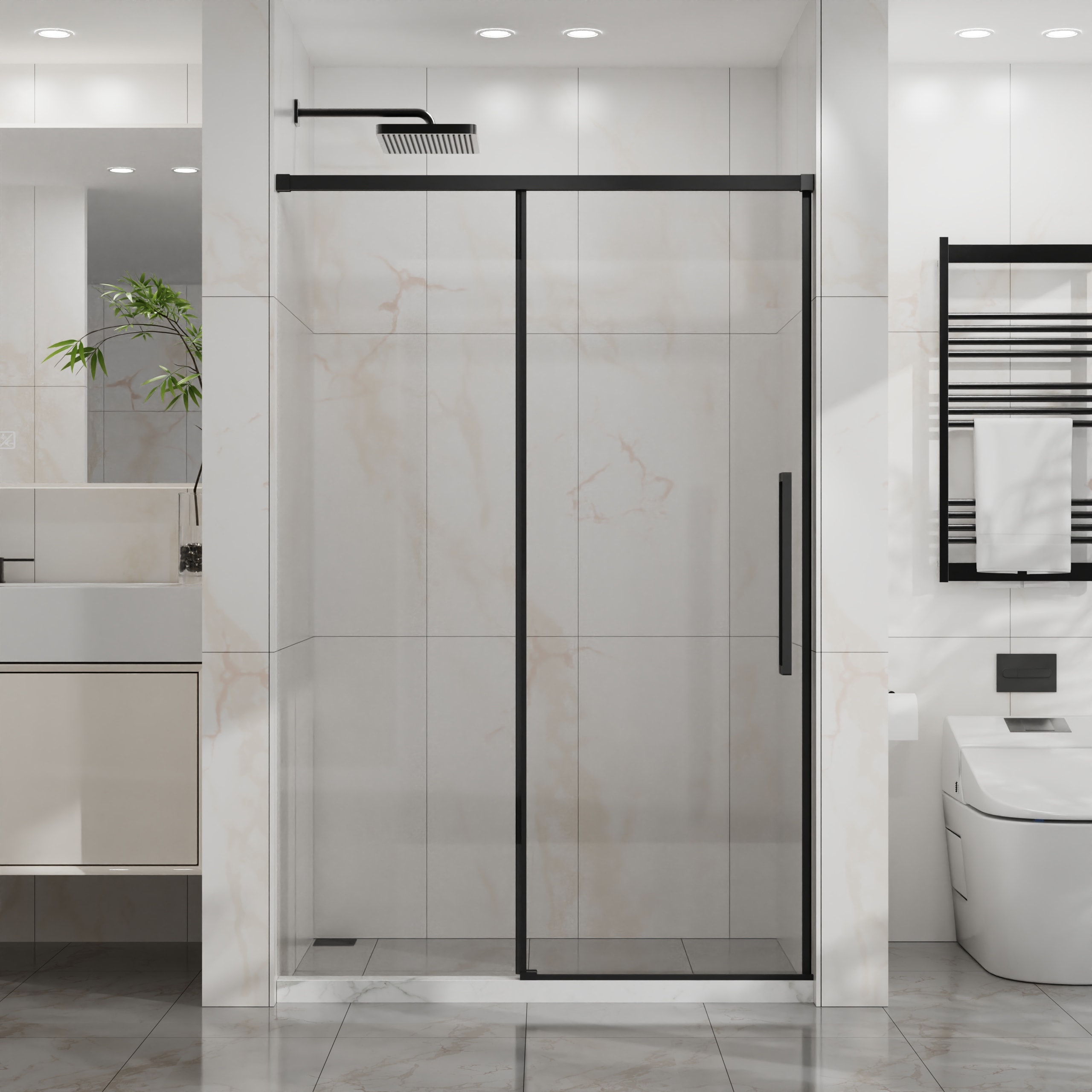 48" W x 72" H Sliding Shower Door, Semi-Glass Warehouse Frameless Glass Shower Door, 1/4"(6mm)Thick Tempered Clear Glass