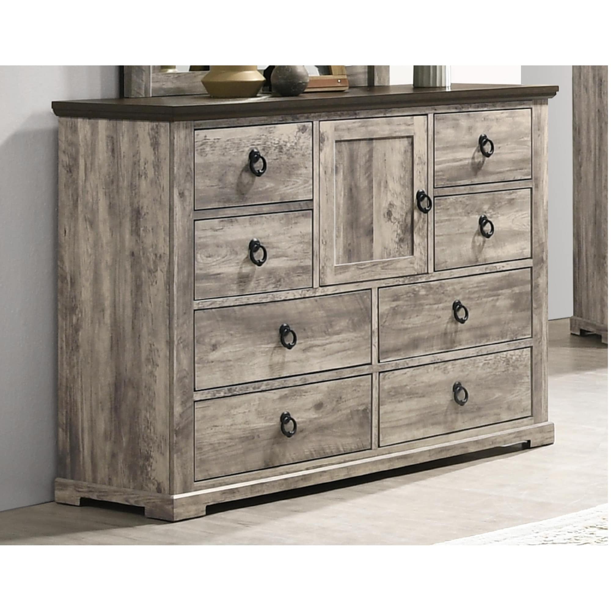 Simple Contemporary 1pc Dresser Rustic Oak Veneer Solid wood English Back Dovetail Drawers Bedroom Furniture Front Mirror Panel