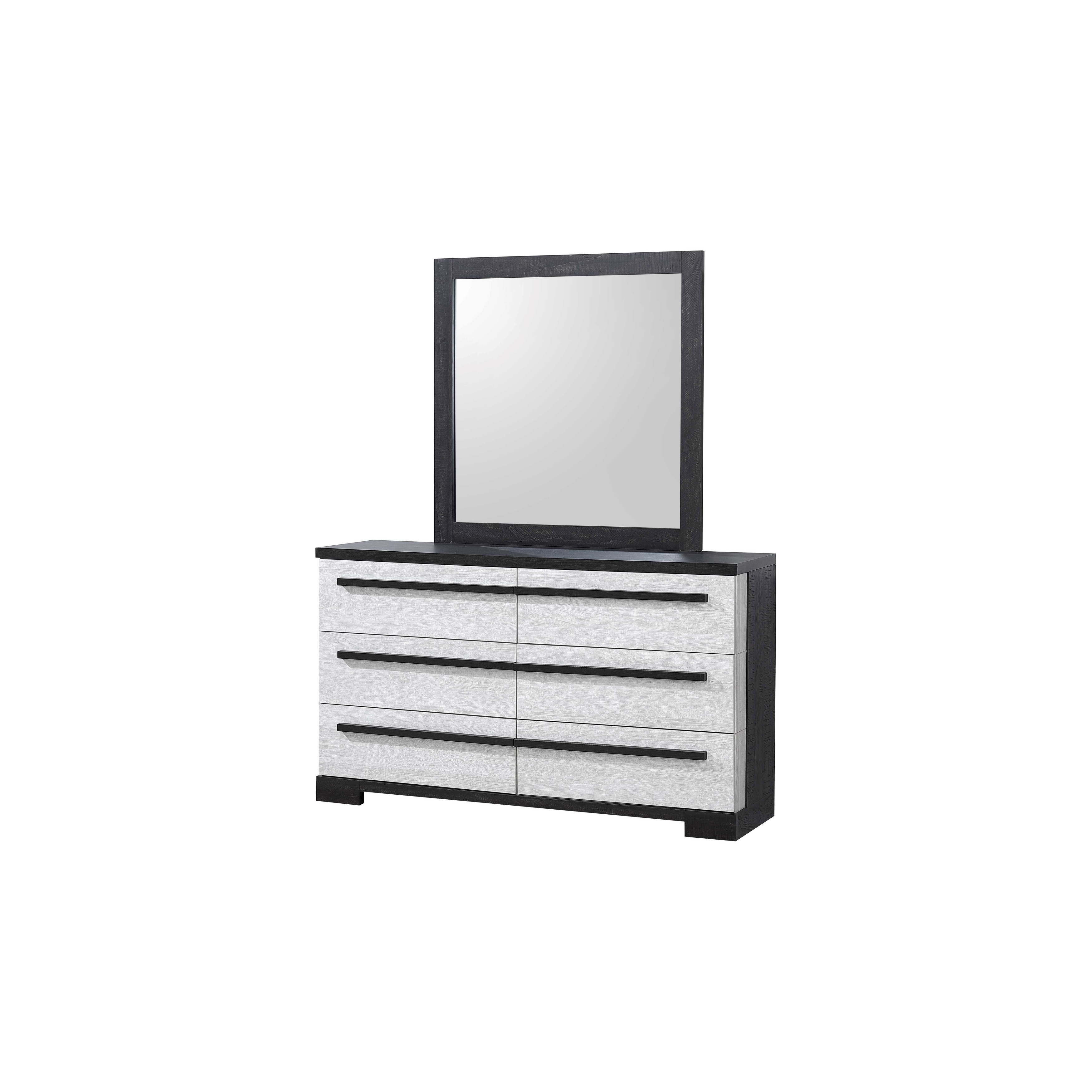 1pc Six Drawers Dresser Cream Ebony Finish Wooden Storage Bedroom Furniture