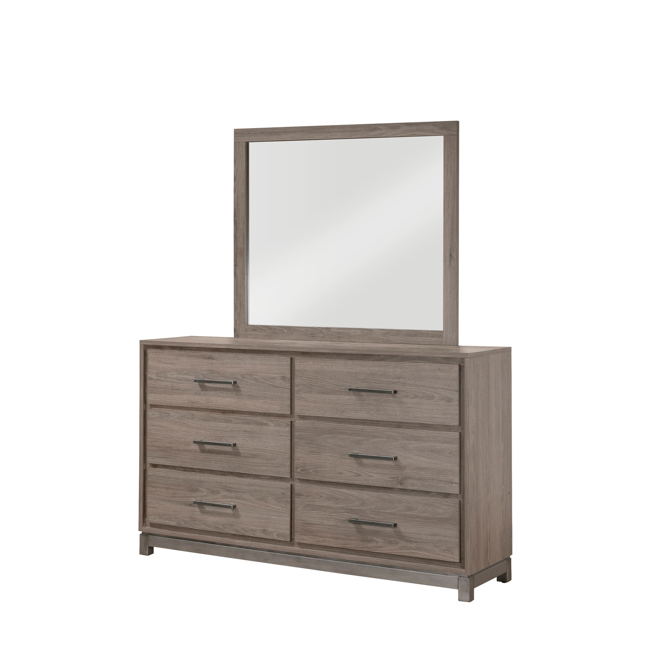 1pc Contemporary 6-Drawer Storage Dresser Metal Handle Grey Oak Finish
