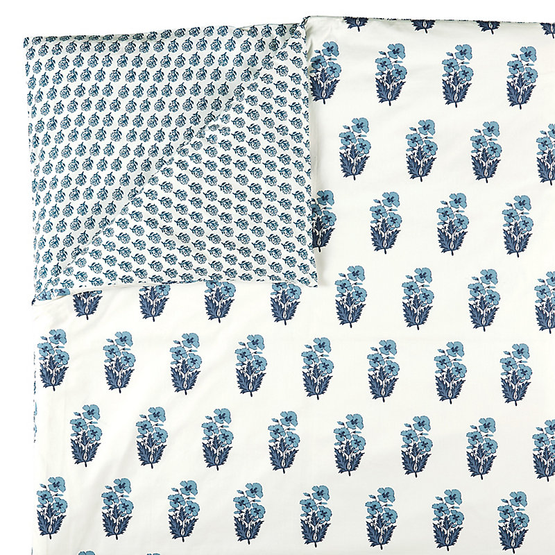 Leila Block Print Duvet Cover - Indigo, King - Ballard Designs