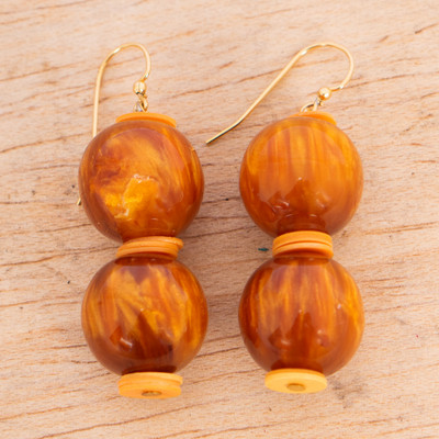 'Warm Brown-Palette Recycled Glass Beaded Dangle Earrings'