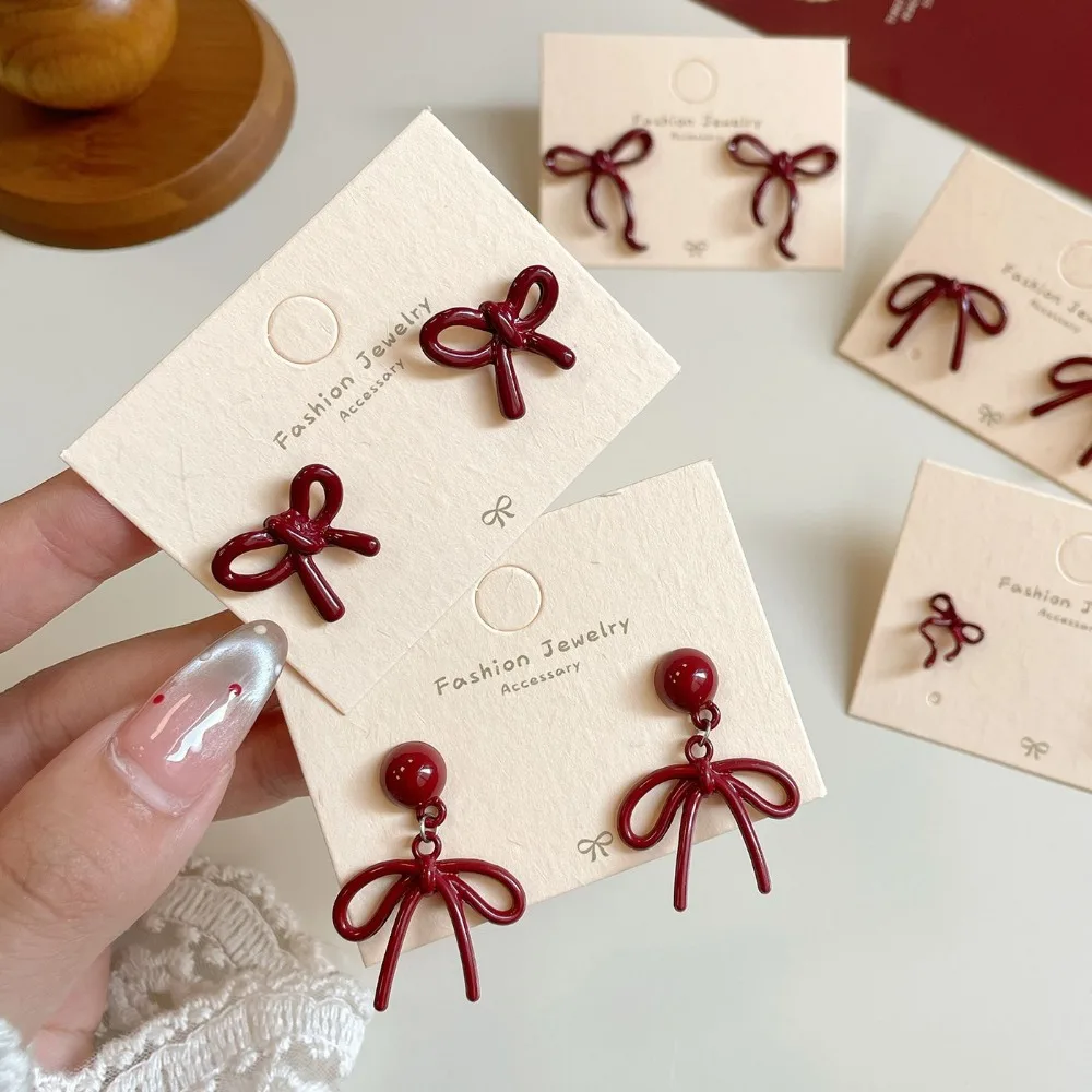Retro Red Bowknot Stud Earrings For Women Girls Elegant Piercing Aesthetic Ballet Ribbon Jewelry Gift shortbow
