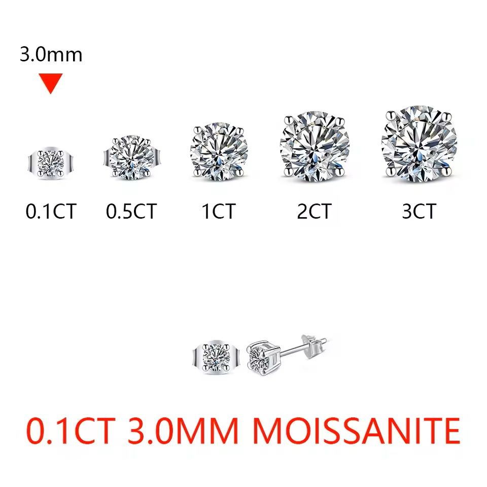 2 Carat Moissanite Stud Earrings With Sterling Silver Or Gold Setting 0.1ct Vvsi1 3.0mm solid 14k Gold