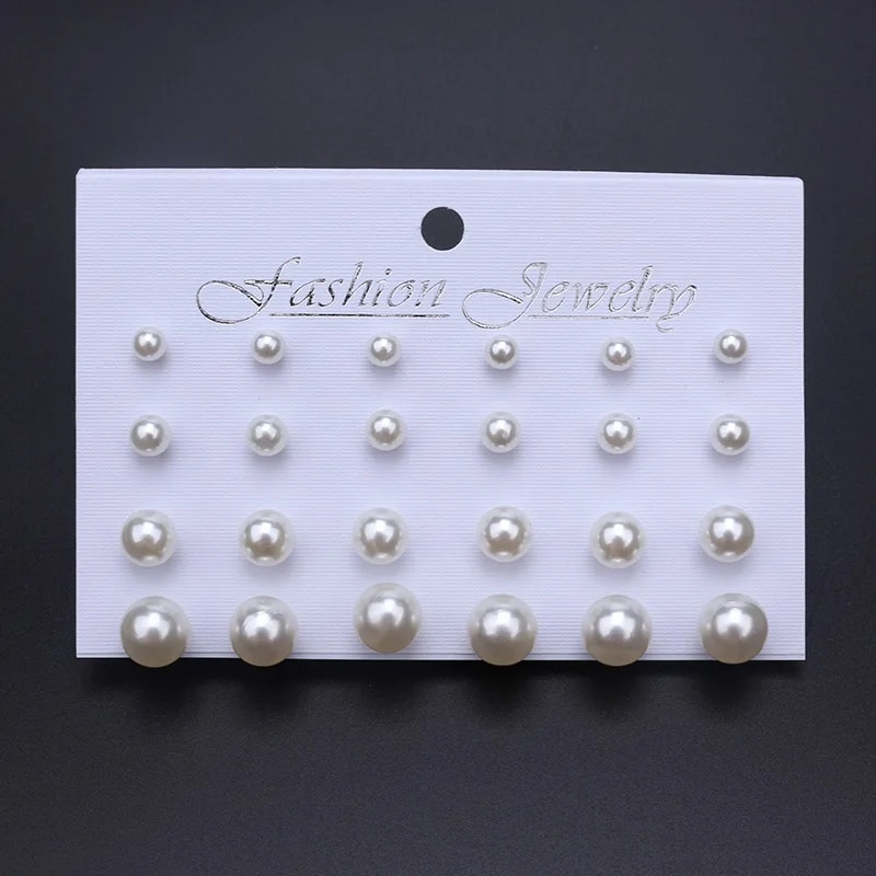 12 Pair Set Beige & White Pearl Korean Women's Fashion Earrings Wedding & Valentine's Day Gift Jewelry ES3357