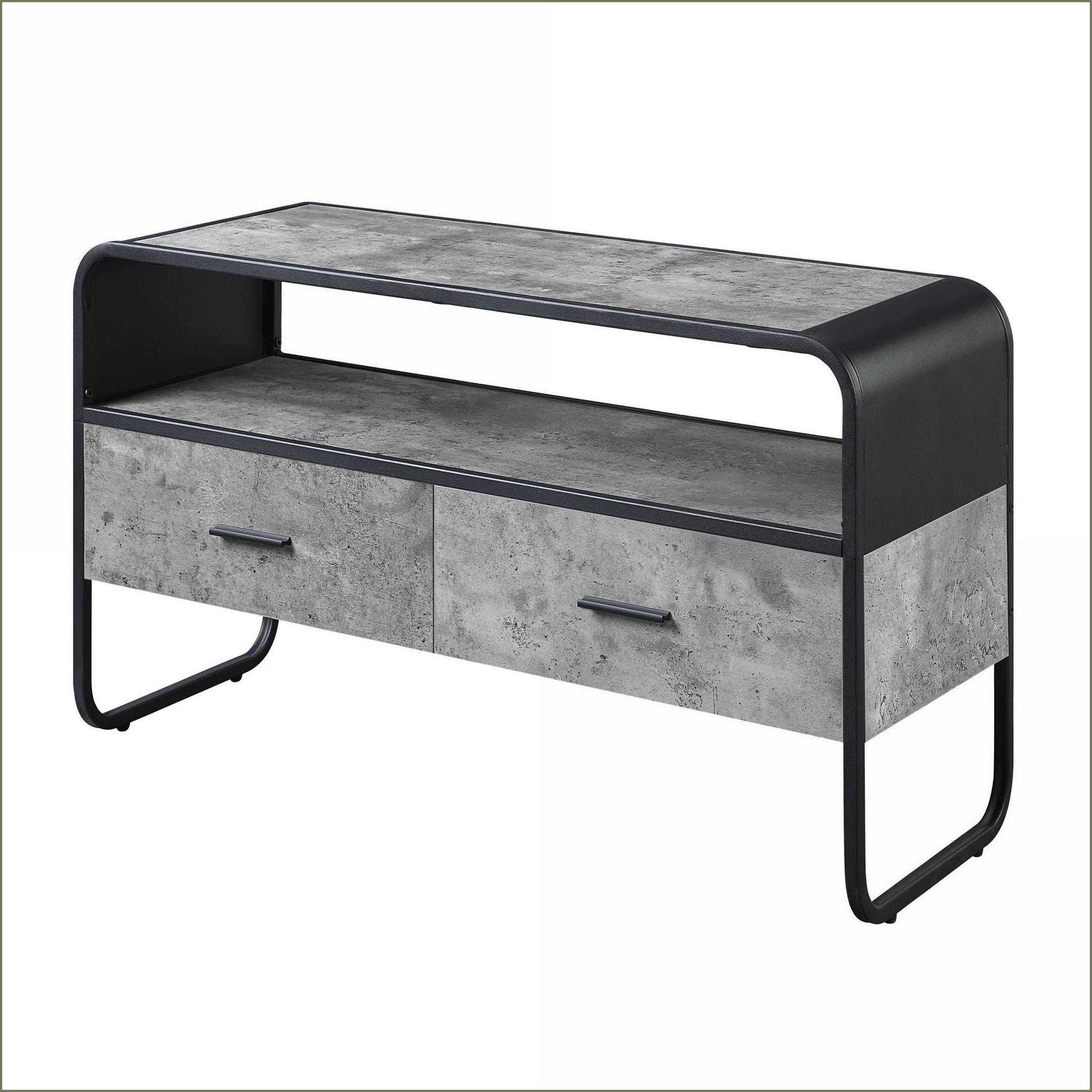 TV Furniture Modern 2-Drawer TV Stand Concrete Grey and Black, Fits 42in TVs, Modern, Wood+Metal