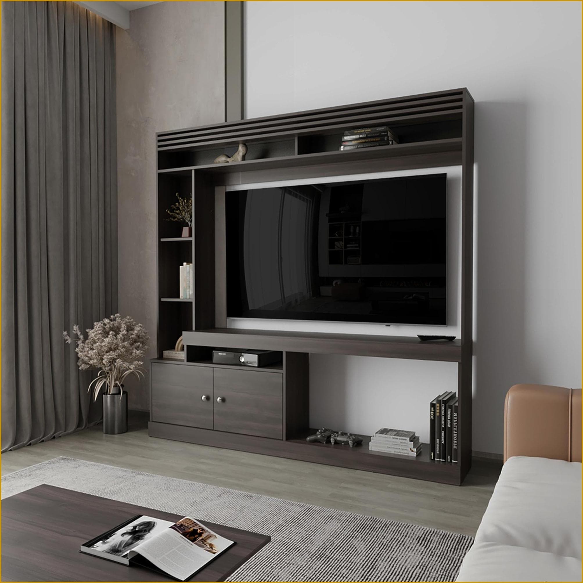 TV Furniture, Contemporary Dark Walnut Entertainment Center with Storage, Engineered Wood, TV Size Ranges 50-59 inches