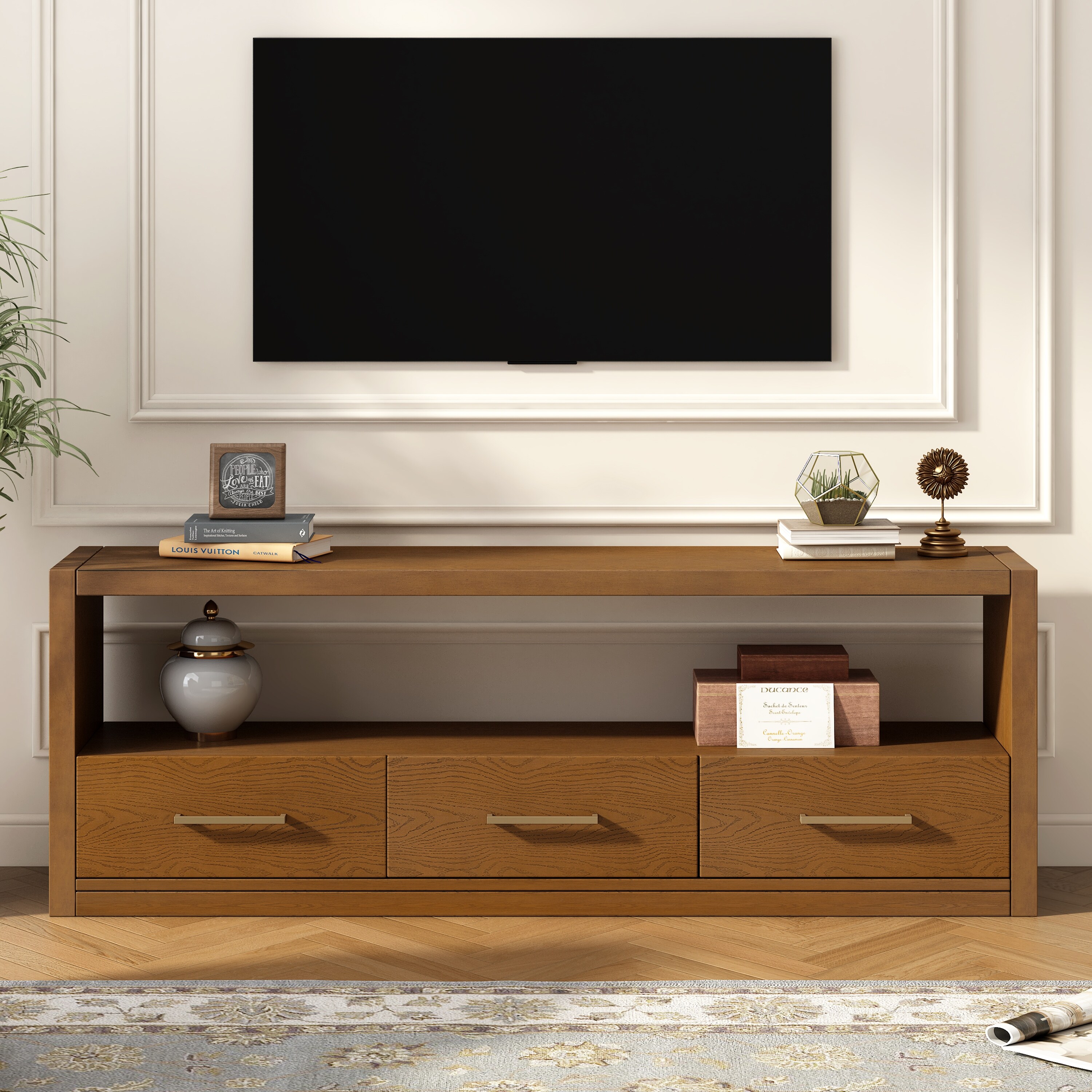 Classic Storage TV Stand, Living Room Media Entertainment Center with 3 Drawers, Metal Handles, For TVs Up to 75"
