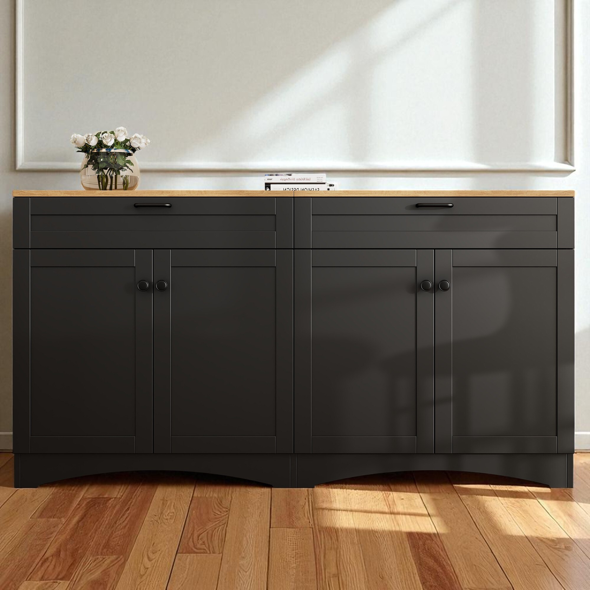 Farmhouse TV Stand with 2 Drawers for TVs Up to 70", Rustic Sideboard with Adjustable Shelves and Wood Grain Finish