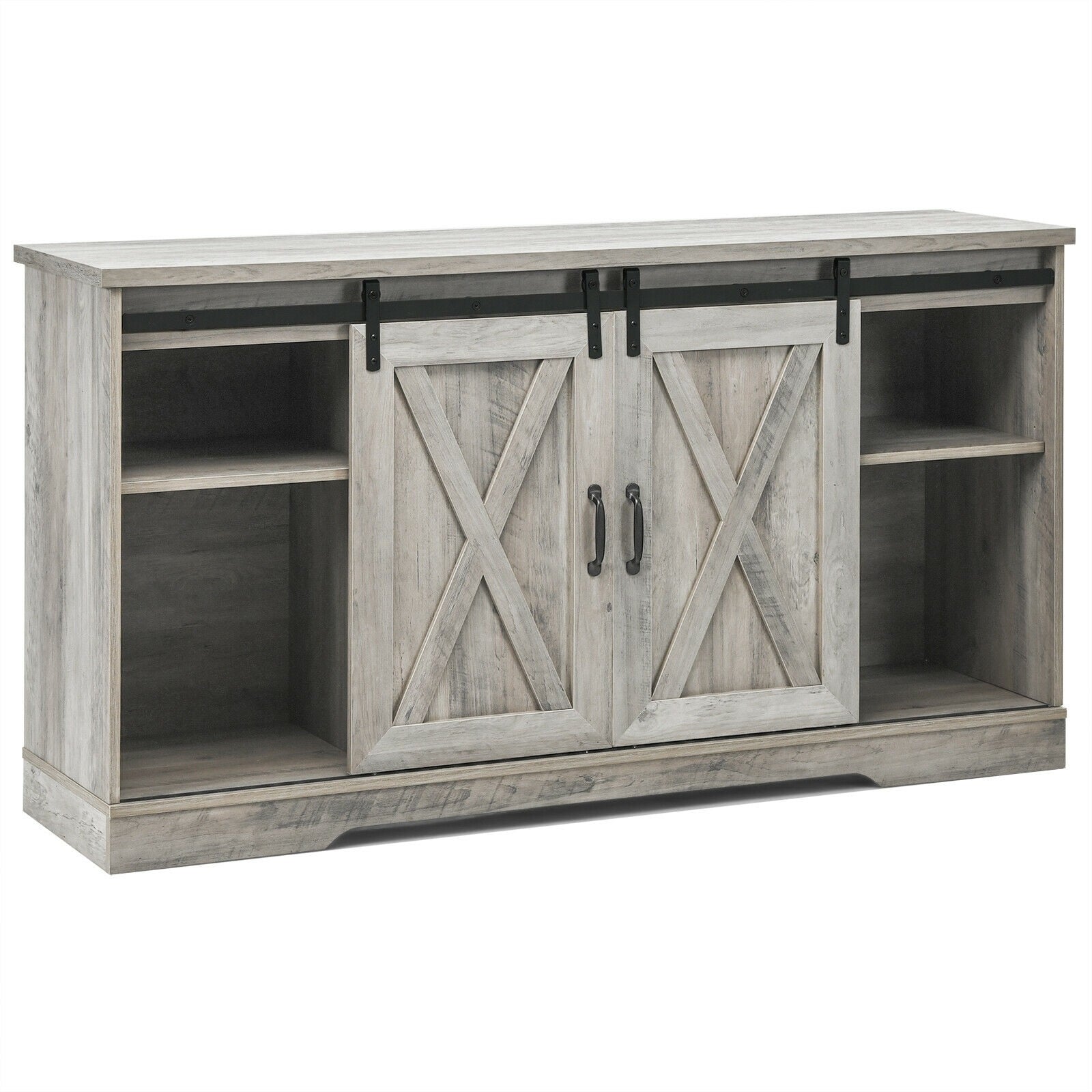 59" TV Stand with Adjustable Shelf and Sliding Barn Door Cabinet - 59" x 16" x 32" (L x W x H)