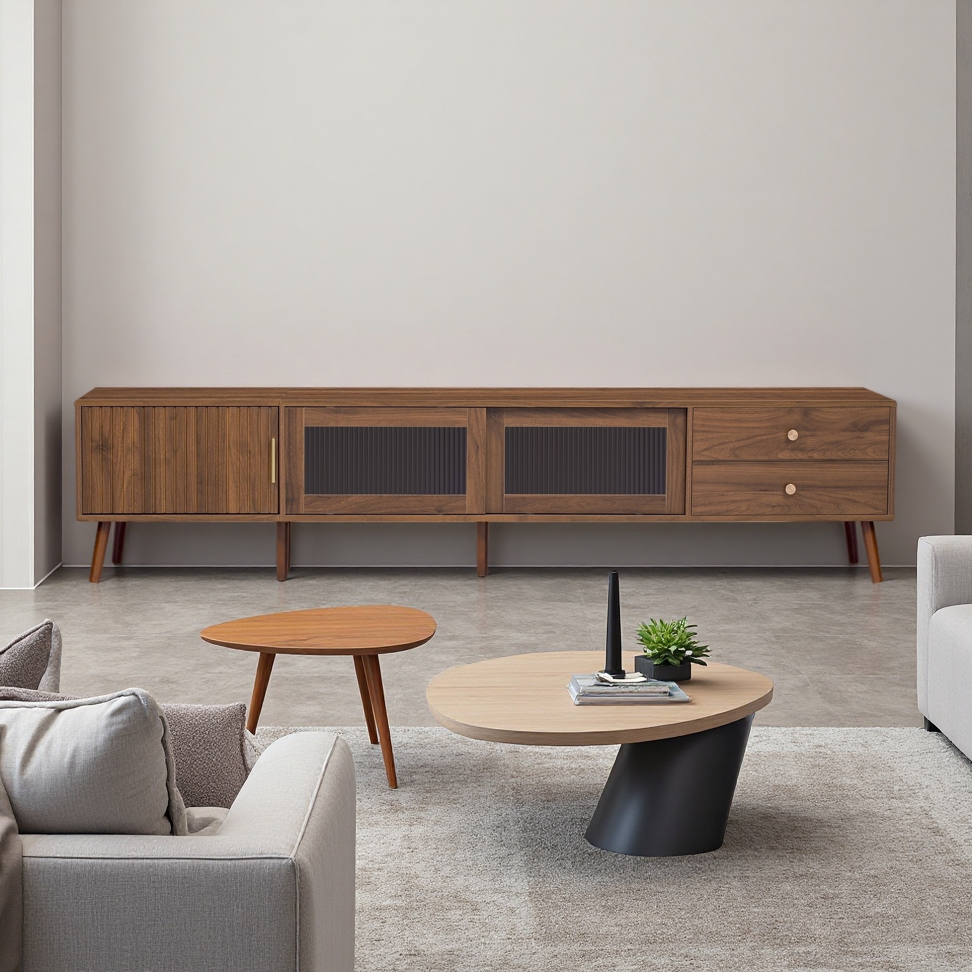 TV Stand, Mid Century Modern TV Table for TV's Up to 65 Inch, Entertainment Center with Cord Management for Furniture