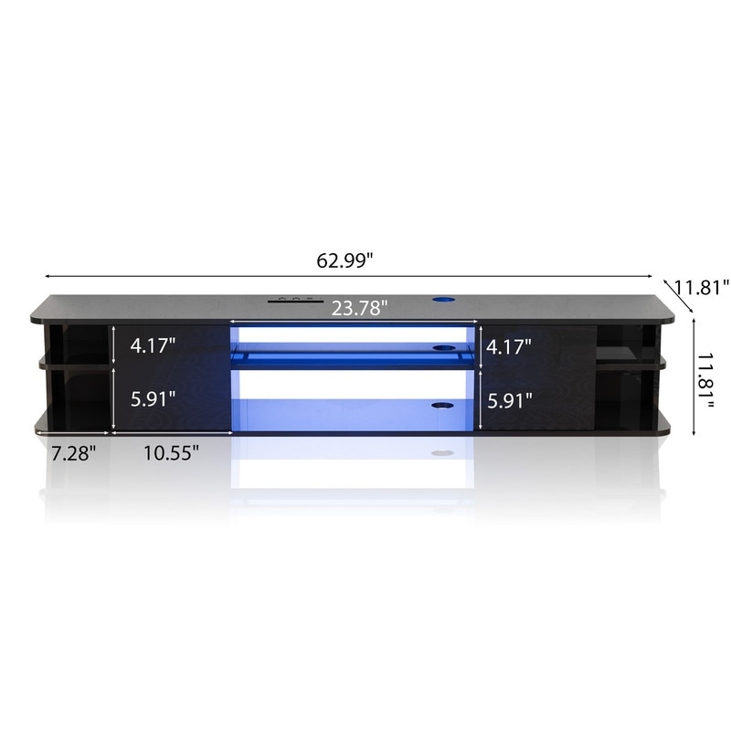 Floating TV Stand Wall Mounted with 16 Color LEDs, 69" Modern TV Stand, Floating TV Cabinet Entertainment Center