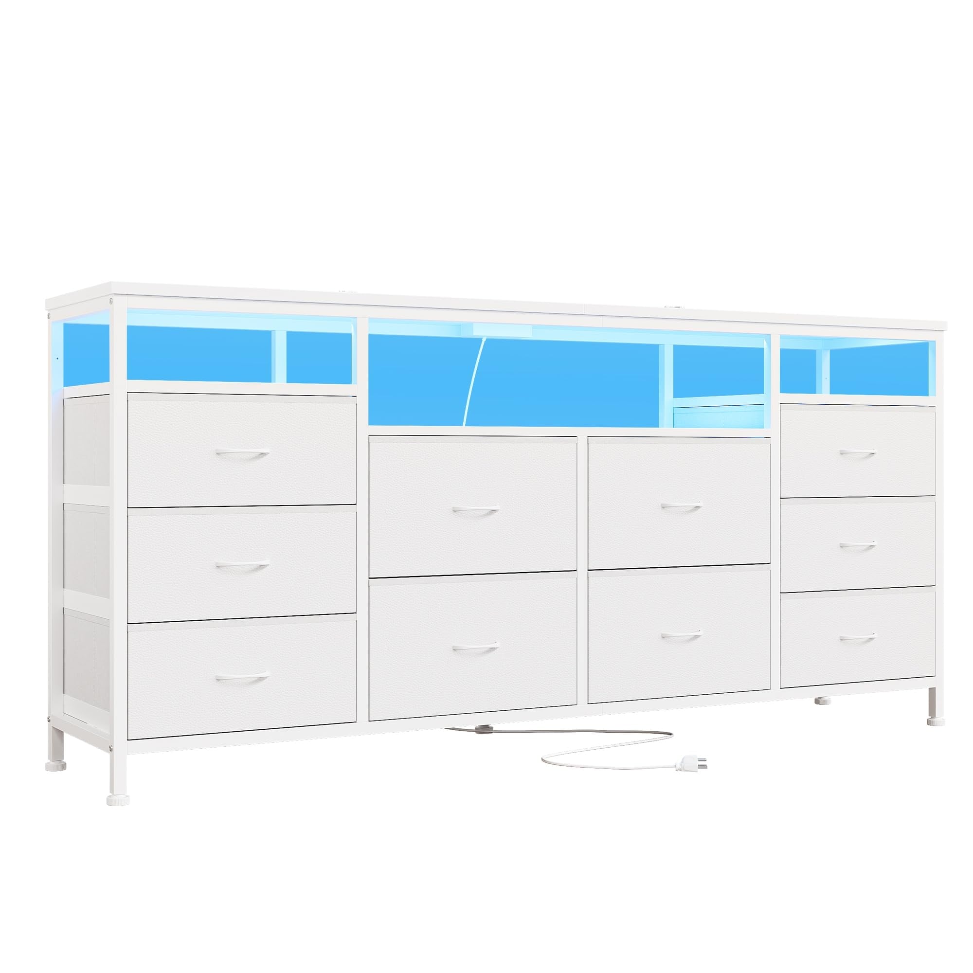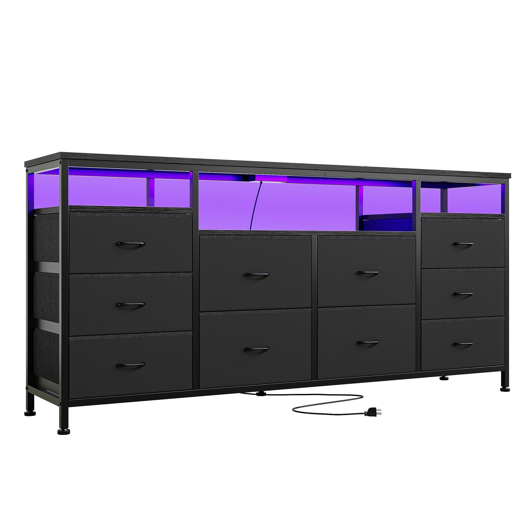 63" Long Dresser with 10 Fabric Drawers, TV Stand for Up to 75 Inch TV, Entertainment Center with LED Lights