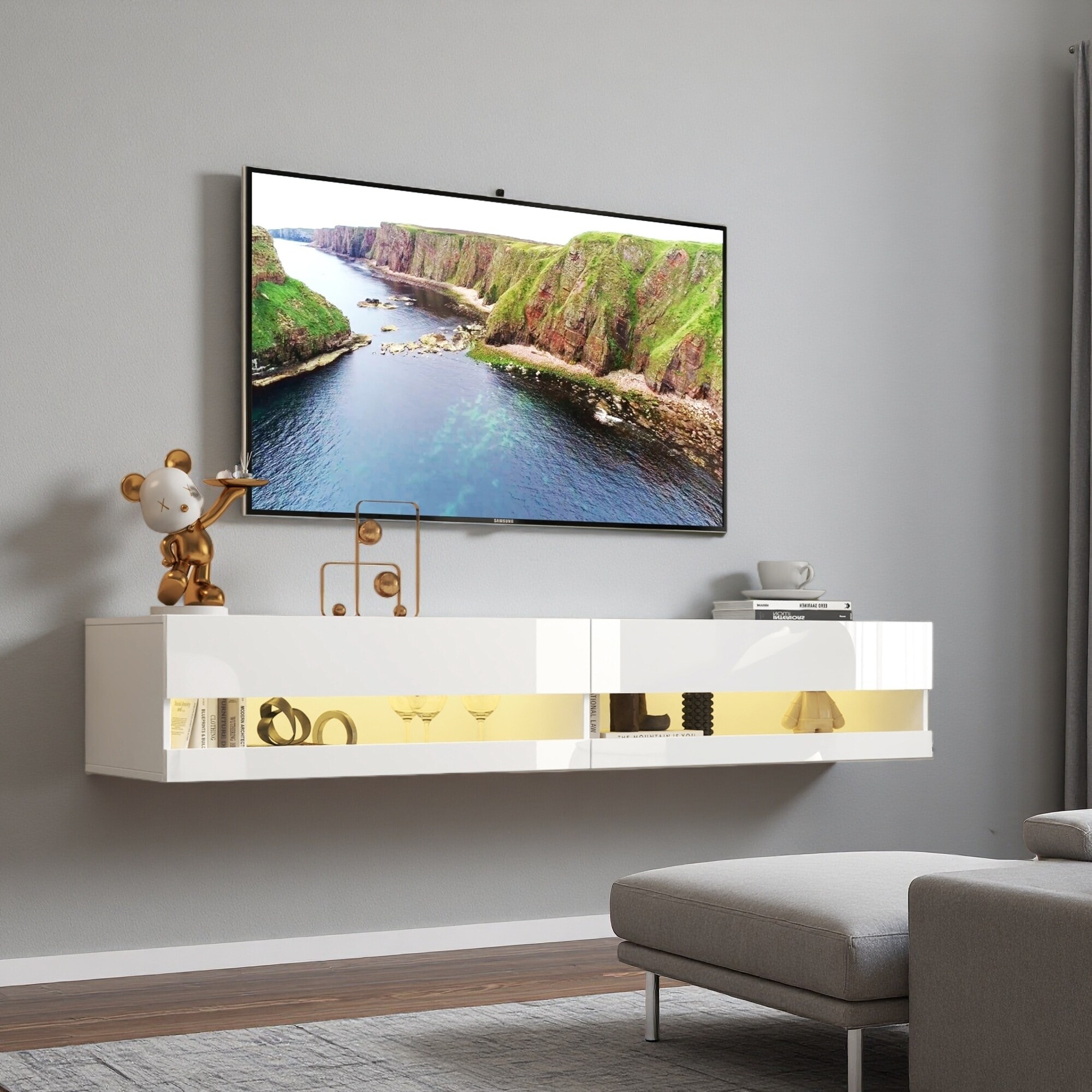 68.8" Floating LED TV Stand with 16-Color Lighting - Wall Mounted Design, Large Storage Space
