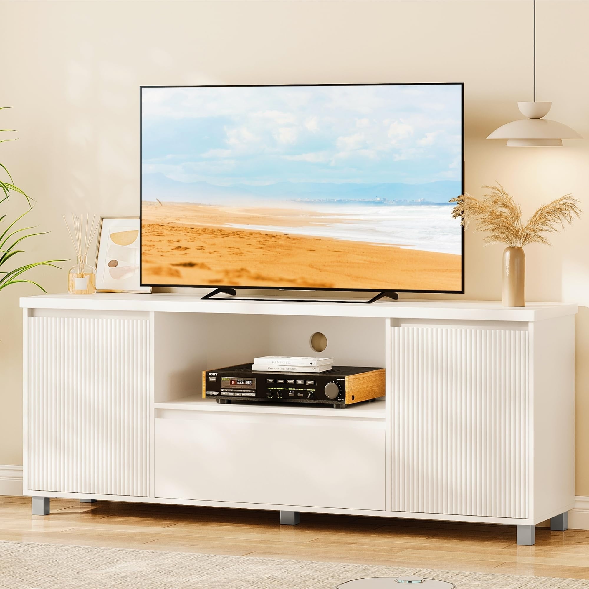 Fluted TV Stand for 65 Inch TV, Entertainment Center with Storage Drawer and Open Shelf