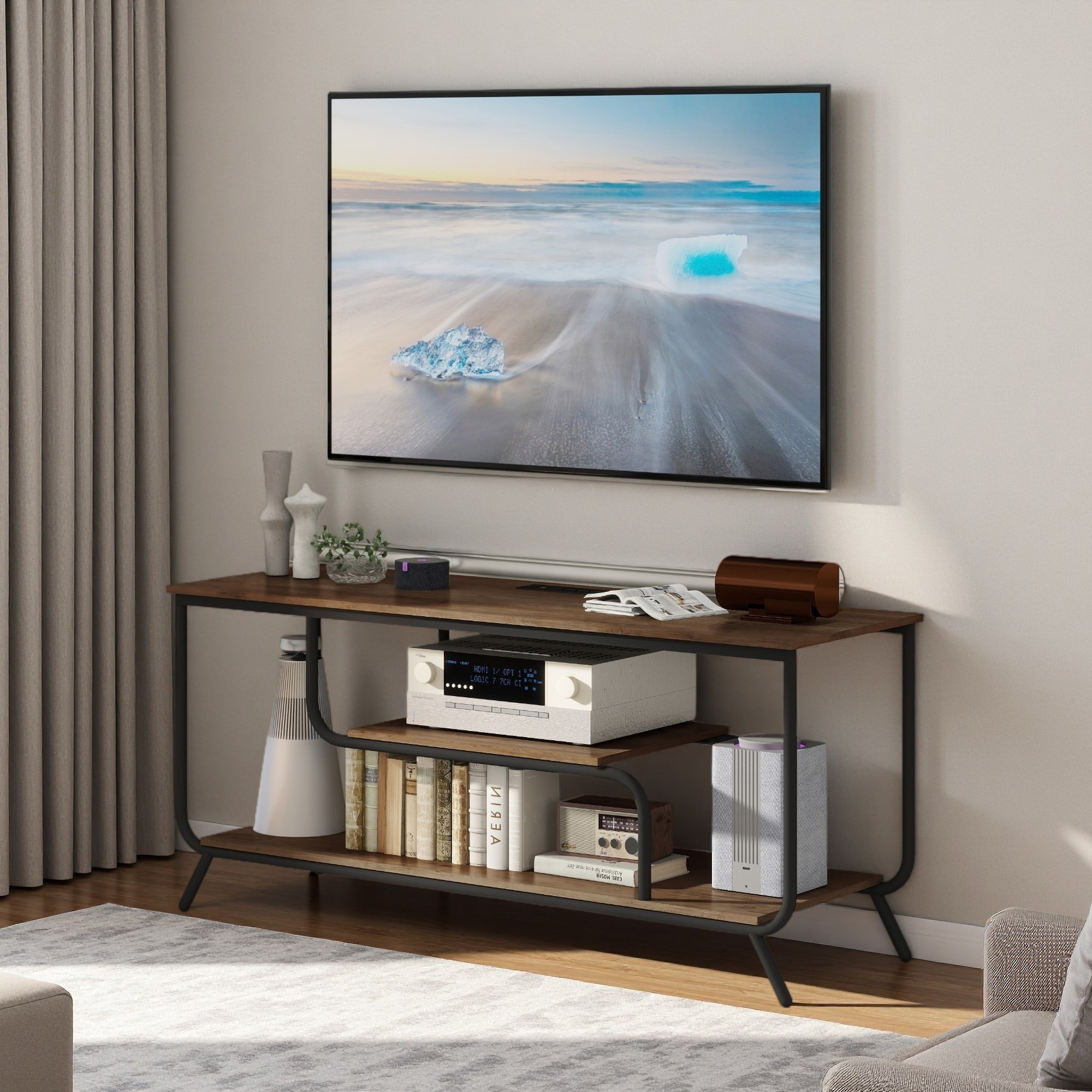 Black and Macadamia Hairpin Legs TV Rack