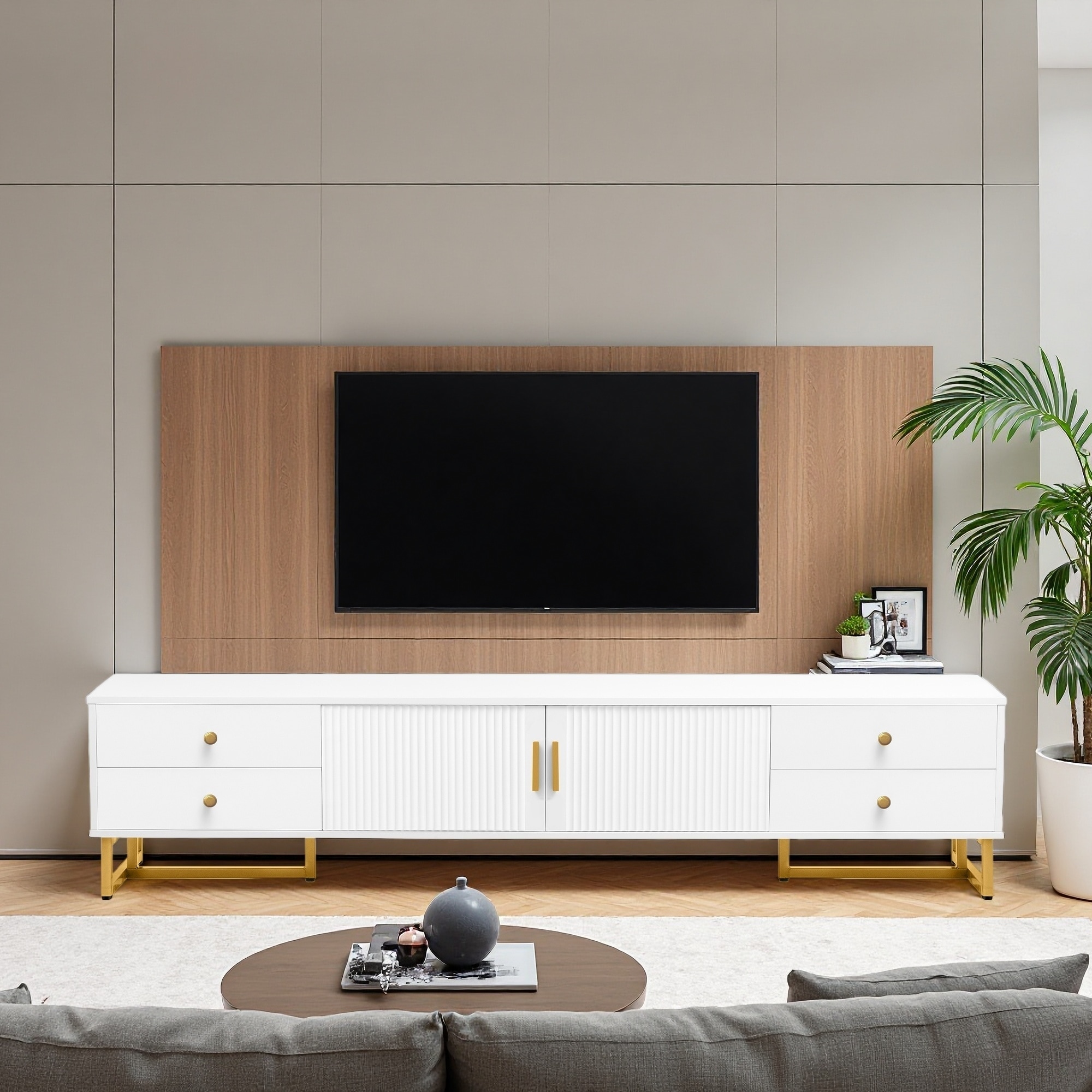 70.9" MDF Modern TV Stand with 4 Drawers & Sideboard Cabinet for 80" TVs