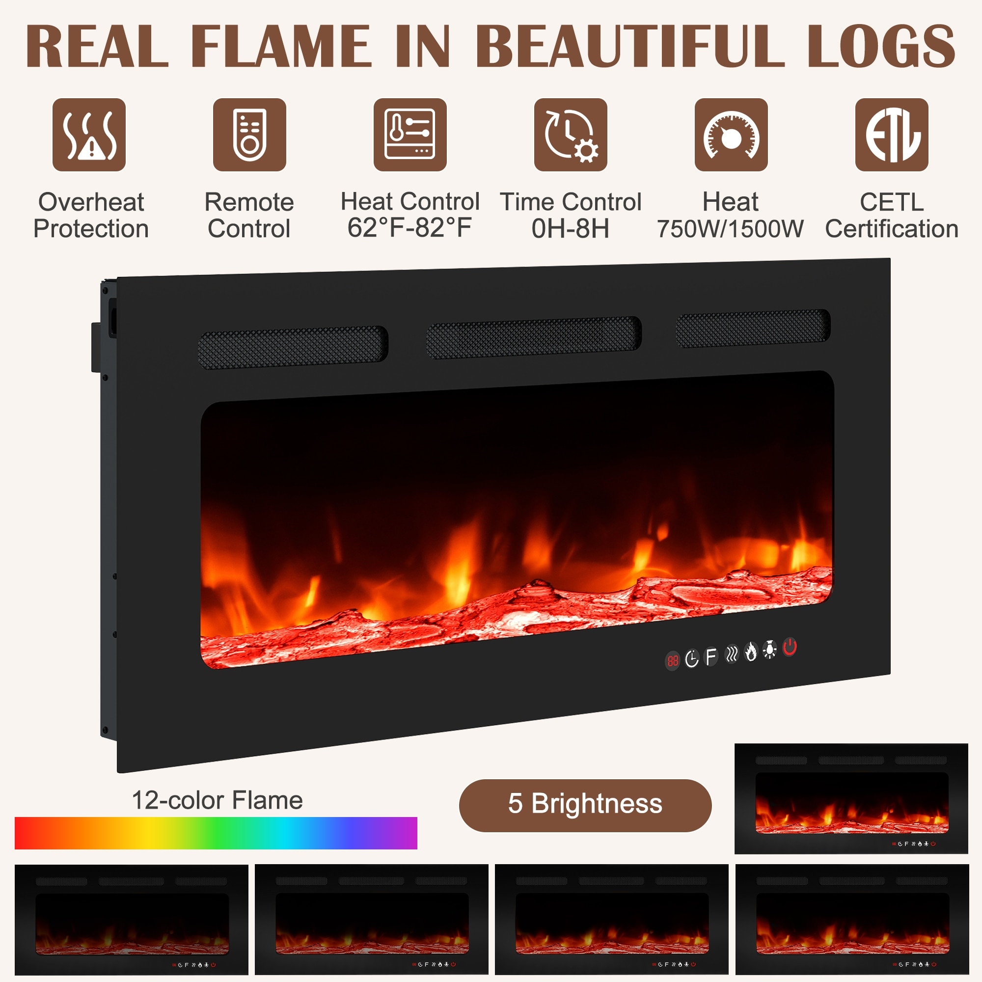 79" Fireplace TV Stand with 36" Electric Fireplace
