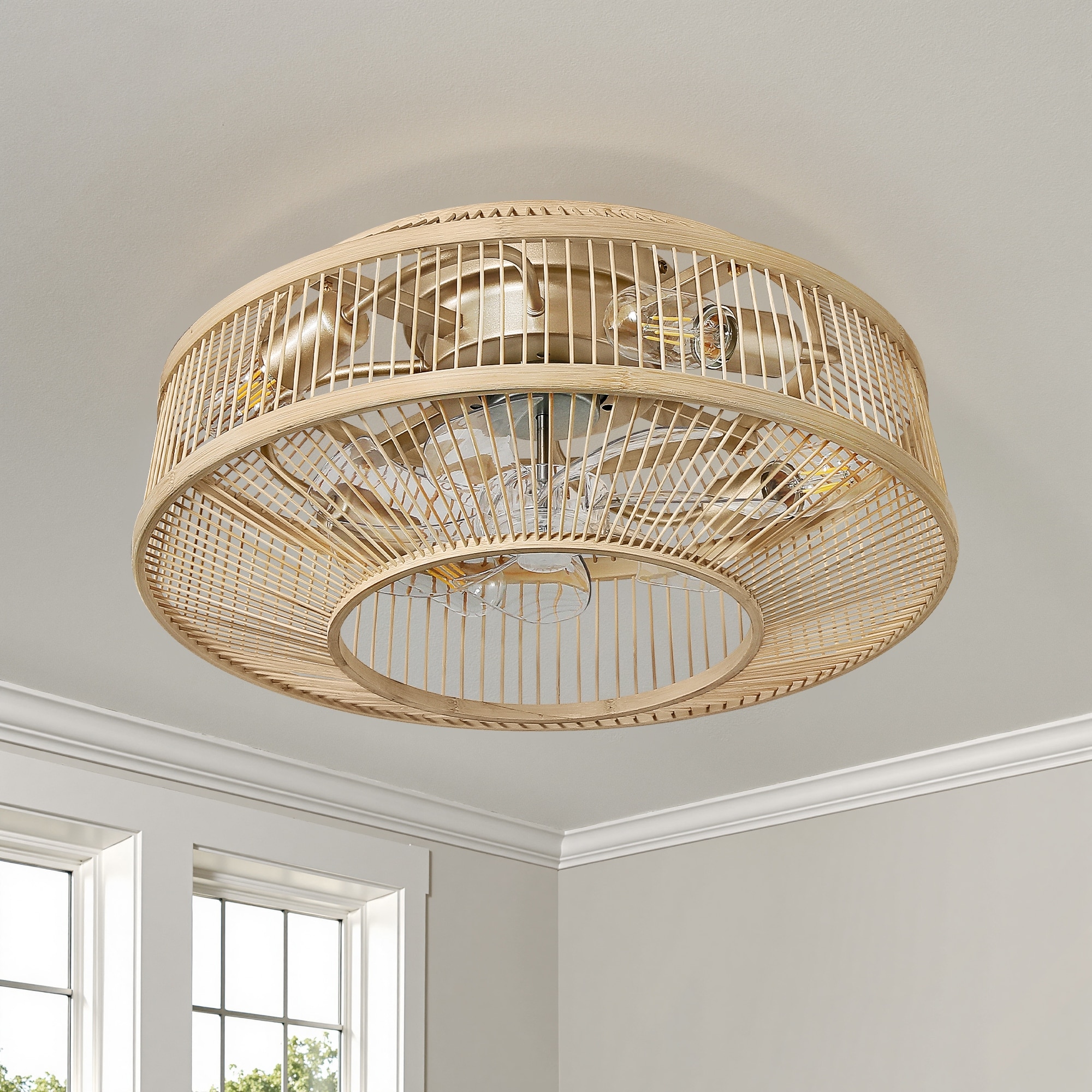 20" Boho Rattan Ceiling Fan With Lights And Remote, 6-Speed, Reversible Blades For Home Use - 4-lights
