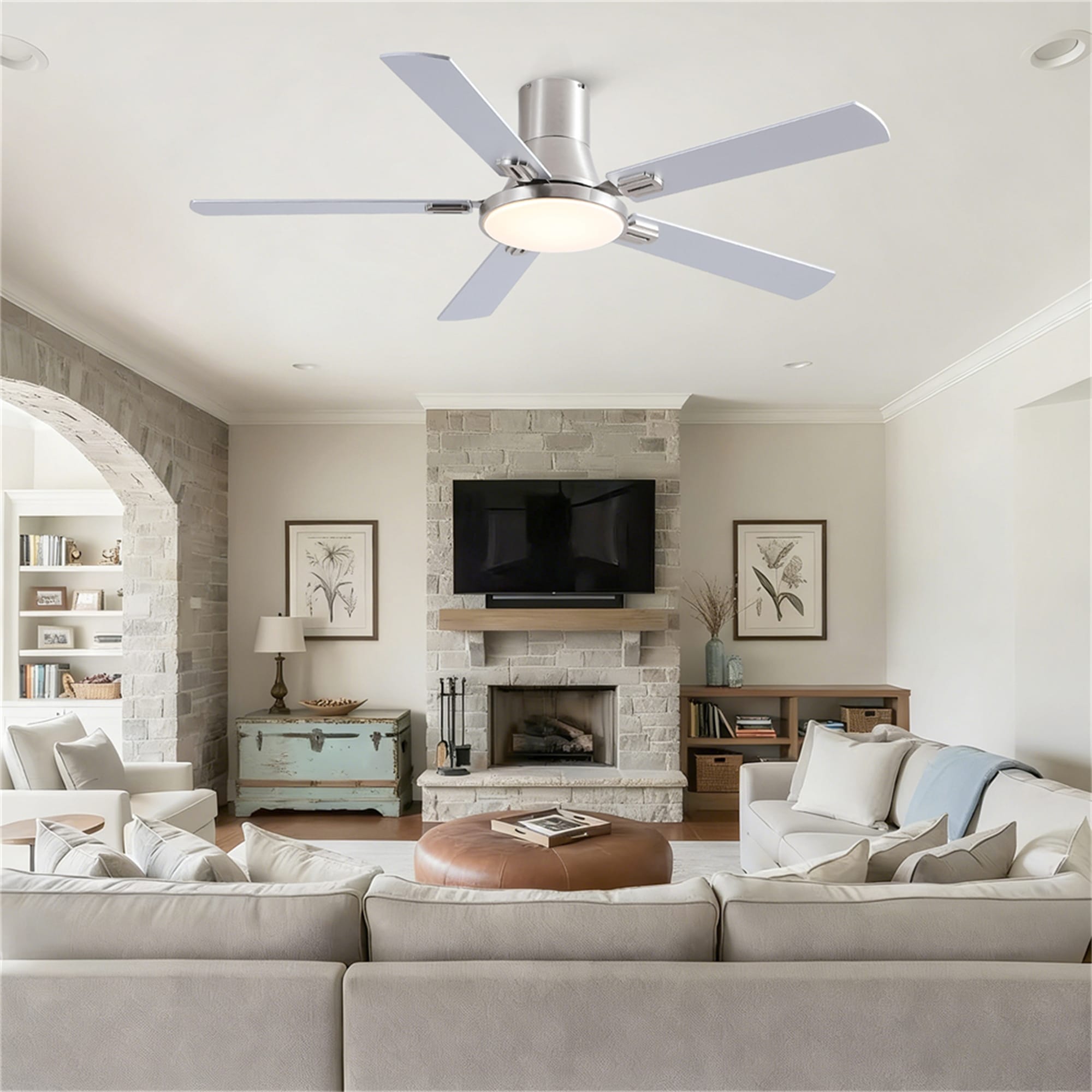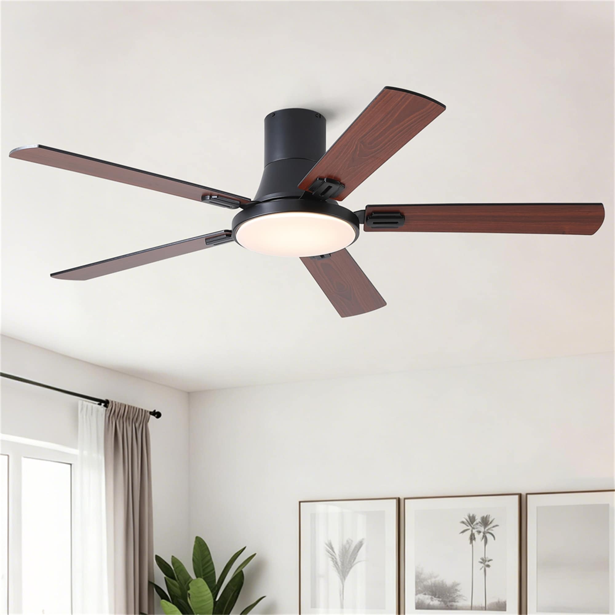 52 inch Flush Mount Ceiling Fan with Light and Double-Sized Blades