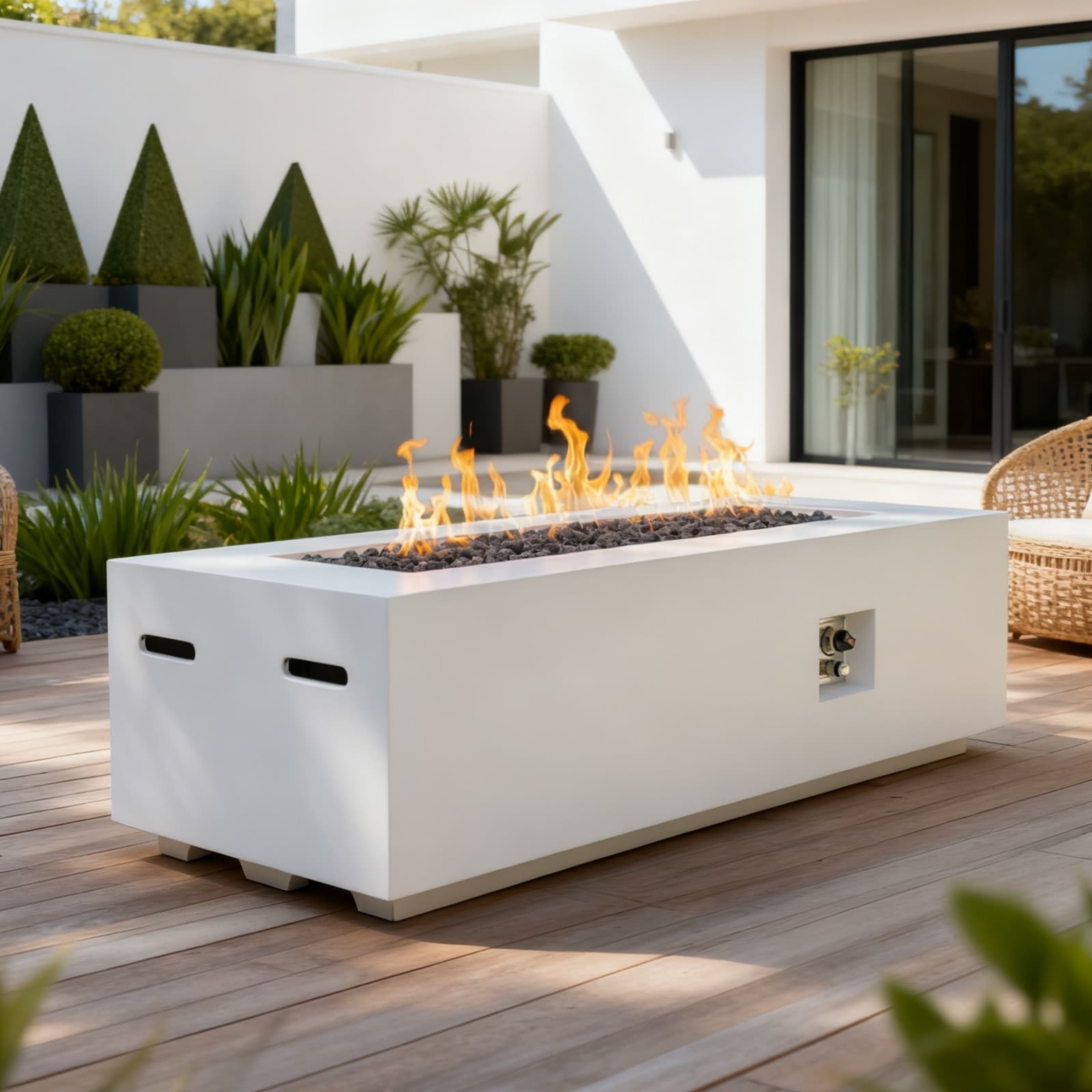 60'' Outdoor Concrete Rectangle Propane Fire Pit Table with Lava Rocks
