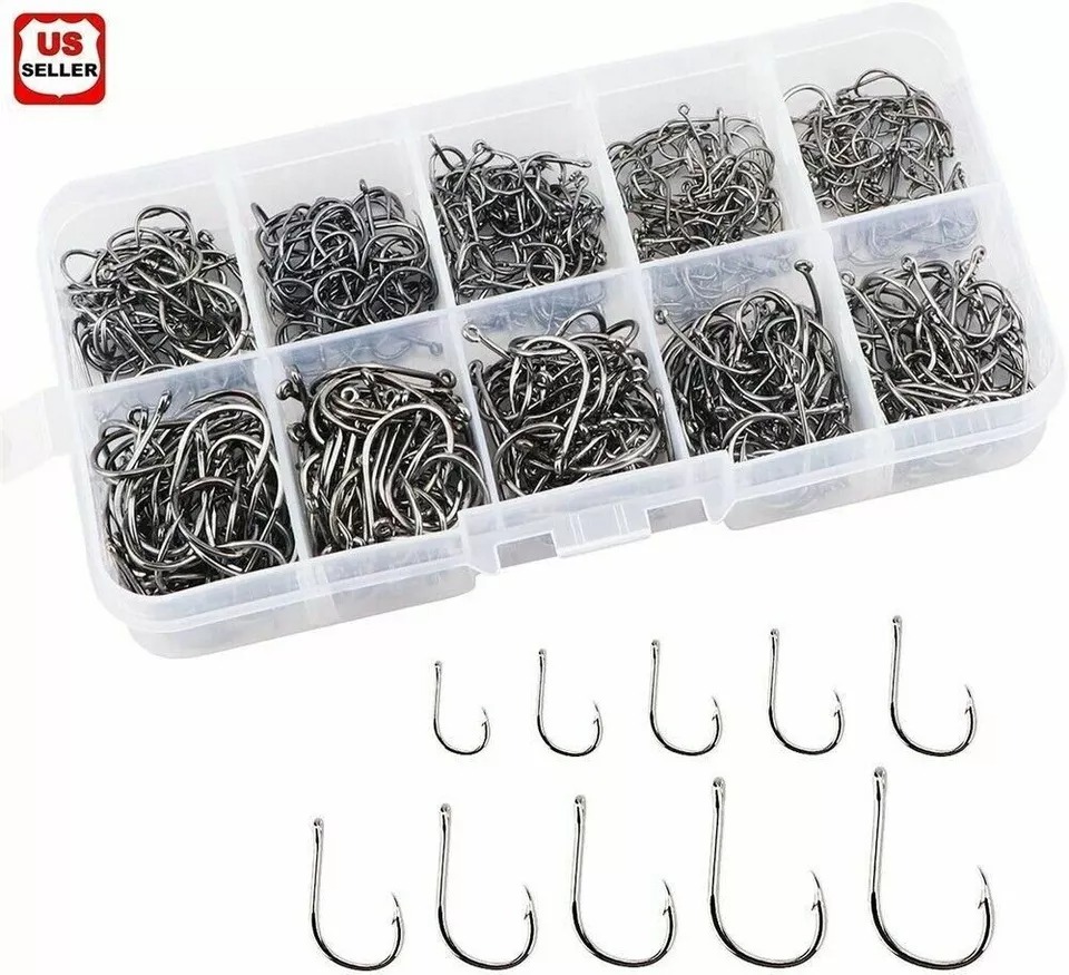500pcs Fish Hooks 10 Sizes Fishing Black Silver Sharpened With Box Quality Kit 500pcs Fish Hooks 10 Sizes Fishing Black Silver Sharpened With Box Quality Kit